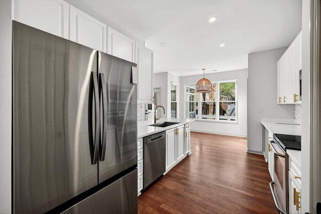 Beautifully maintained, unfurnished home in Mount Pleasant, located just off Highway 41 and close to Route 17 for easy access to shopping, dining, beaches, and downtown Charleston. This updated property features a whole-house Halo water filtration system, HVAC with UV light sterilization, refinished floors, and new appliances including refrigerator and washer/dryer. The main level offers an office, flex space, living area, and modern kitchen. A newly remodeled lower-level flex space opens directly to the pool deck and includes a wet bar, full bathroom, and seating area, creating seamless indoor-outdoor living. The resort-style backyard features a pool and spa with heater/chiller, travertine decking, shaded patio, screened porch, and full deck. Upstairs includes spacious bedrooms and a loft. Additional features include a two-car garage and exceptional cleanliness throughout. Located in a desirable neighborhood with access to a community dock and marsh views!