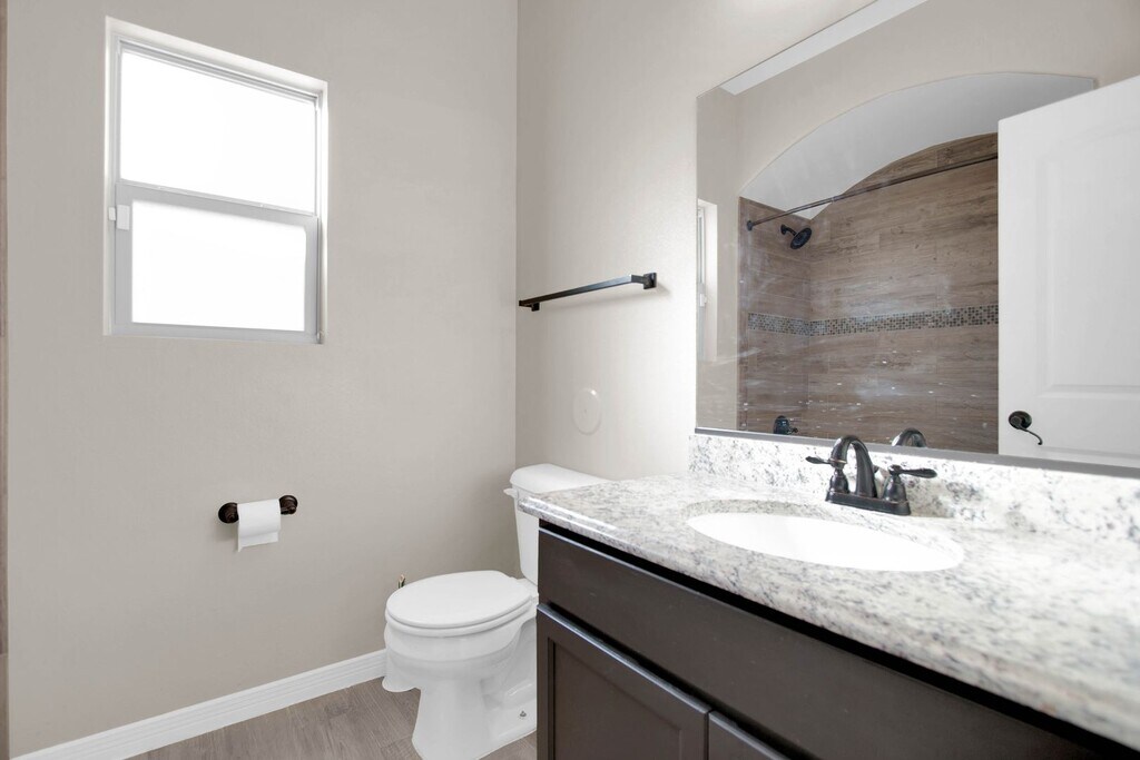 Step into this beautifully designed 3-bedroom, 2-bathroom home, where comfort meets style. Featuring tile flooring throughout, this home offers a seamless blend of elegance and easy maintenance. The spacious master suite includes a walk-in closet and a luxurious jetted tub in the master bath, complete with double vanity sinks for added convenience. The modern kitchen boasts granite countertops and stainless steel appliances, perfect for home chefs, while the breakfast area provides a cozy spot to enjoy meals. Stay cool year-round with refrigerated A/C and ceiling fans throughout. Enjoy privacy and security with window shutters and a walled backyard, ideal for relaxation or entertaining. The tankless water heater ensures endless hot water, and the double-car garage offers ample storage and parking space. This home is a perfect blend of comfort, efficiency, and style—schedule your showing today! All El Paso Rentals residents are enrolled in the Resident Benefits Package (RBP) for $45.95/month which includes renters insurance, credit building to help boost your credit score with timely rent payments, $1M Identity Protection, HVAC air filter delivery (for applicable properties), move-in concierge service making utility connection and home service setup a breeze during your move-in, our best-in-class resident rewards program, and much more! More details upon application.