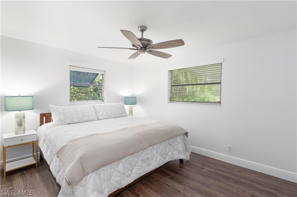 Available for Annual or Shorter Term Rental. This LAKEFRONT,stylish single-family,home is located in a quiet,NON-HOA neighborhood in the HEART OF NAPLES! The Sunny,SOUTH-FACING YARD has plenty of room for bocce or a fun game of cornhole. Lush landscaping is filled with vibrancy and a mature oak tree towers above the paver patio creating the perfect shade spot. The Lake offers endless hours of bird watching,especially around sunset as birds fly home to roost for the night. As you step into the front door you are greeted by a FRESHLY PAINTED interior and TASTEFUL FURNISHINGS. The open kitchen with Quartz countertops gives you ample space for entertaining (there is even a beverage fridge). The high-efficiency Washer and Dryer are tucked behind a barn door along with extra storage space . The Primary Bedroom has a King Bed,and a peaceful lake view. The Office/Den has a new motorized standing desk and chair,and two windows for natural light. The sunroom has a beautiful view of the lushly landscaped private backyard and Lake. Located just 1.4 miles to Naples Beach and 1.5 miles to the Gordon River Greenway. Shops,Dining,and Boat Rental at the Village on Venetian Bay is just 1.8 miles away,Waterside Shops - 2.4 miles and 5th Ave S is just 3 miles away. - LAKE PARK,NAPLES HIGH SCHOOL