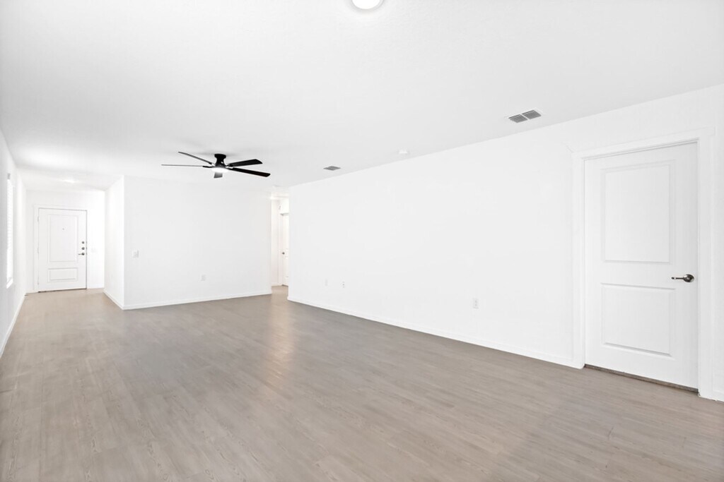 Charming one-story home featuring an open-concept layout that feels bright, spacious, and welcoming from the moment you step inside. The kitchen comes complete with a refrigerator and flows seamlessly into the living and dining areas-ideal for everyday living and entertaining. The primary bedroom includes a generous walk-in closet, offering plenty of storage and comfort. Located just minutes from major highways and shopping centers, this home offers the perfect balance of convenience and cozy living in a well-connected neighborhood.