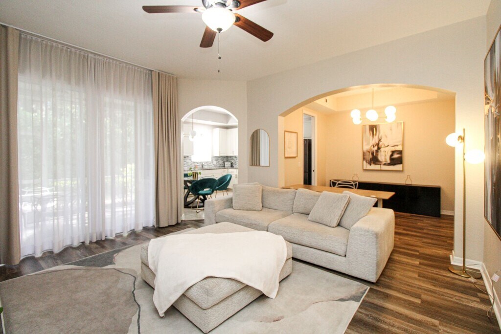 Seasonal (90-day minimum) or Furnished Annual Rental – First Floor Residence 3-D VIRTUAL WALKTHROUGH AVAILABLE HERE: Welcome to Mariposa, one of Naples’ most sought-after gated communities, offering a serene and convenient lifestyle just minutes from the city’s renowned beaches, shopping, dining, and top-rated schools. Nestled in the heart of Collier County, Mariposa is known for its tranquil atmosphere, beautifully maintained surroundings, and welcoming community spirit. This modern first-floor Coach Home spans 1,558 square feet of elegantly furnished living space, featuring high-end finishes and contemporary décor throughout — designed for comfort, style, and easy living. Property Highlights 3 Bedrooms | 2 Bathrooms First-floor unit — no stairs, easy access 1-Car Garage + 2 Driveway Spaces Screened Lanai overlooking a peaceful preserve Fully furnished with modern décor and Smart TVs in the living room and primary suite No carpeting throughout Primary Suite: King bed, Smart TV, luxurious en-suite with soaking tub Guest Bedrooms: One with a Queen bed- one with XL Twin + Trundle In-unit Washer & Dryer All stainless steel appliances (pictures show some white appliances which were recently updated to stainless steel) Recent upgrades: New AC with dehumidifier, new roof, new exterior paint, new water heater Pet-friendly: Small dog permitted with owner and HOA approval (no cats) Community Amenities Clubhouse with gathering space Resort-style swimming pool Fitness center Game room Friendly, well-maintained community atmosphere The community clubhouse serves as the social heart of Mariposa — ideal for hosting gatherings, enjoying game nights, or relaxing with neighbors. These shared amenities foster a true sense of connection and make everyday living feel like a retreat. Rental Terms Minimum lease: 90 days (HOA requirement) Refundable $1,000 common grounds security deposit (paid by tenant) HOA approval required — allow 20 days for processing Small dog allowed with approval Availability & Rates Seasonal Rates: May–September: $2,495 / month October–December: $3,495 / month January–April: $4,495 / month Annual Rate: $2,495 / month Tenant responsible for electricity only First, last month’s rent, and security deposit due prior to move-in Location Mariposa is ideally situated just minutes from: Naples’ white-sand beaches I-75 access for easy travel A-rated schools Premier shopping, dining, and entertainment Enjoy a peaceful, resort-style lifestyle while staying close to everything Naples has to offer.