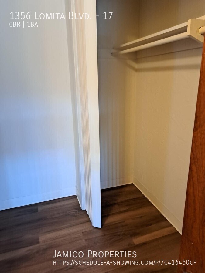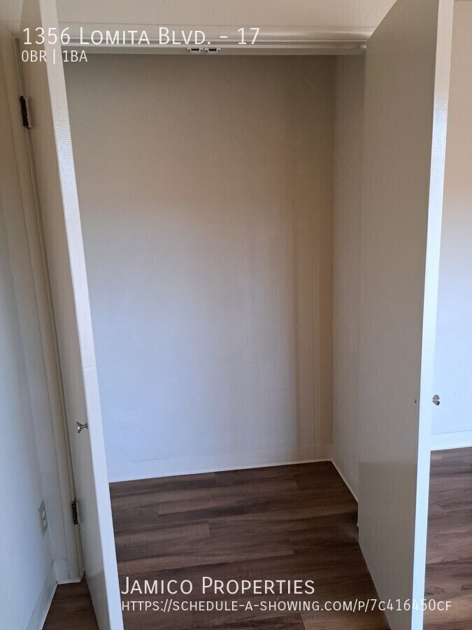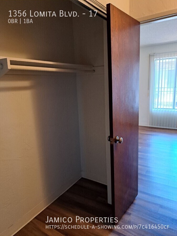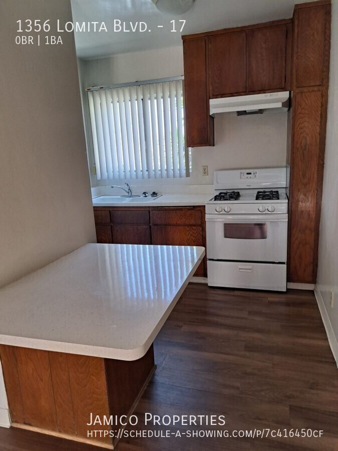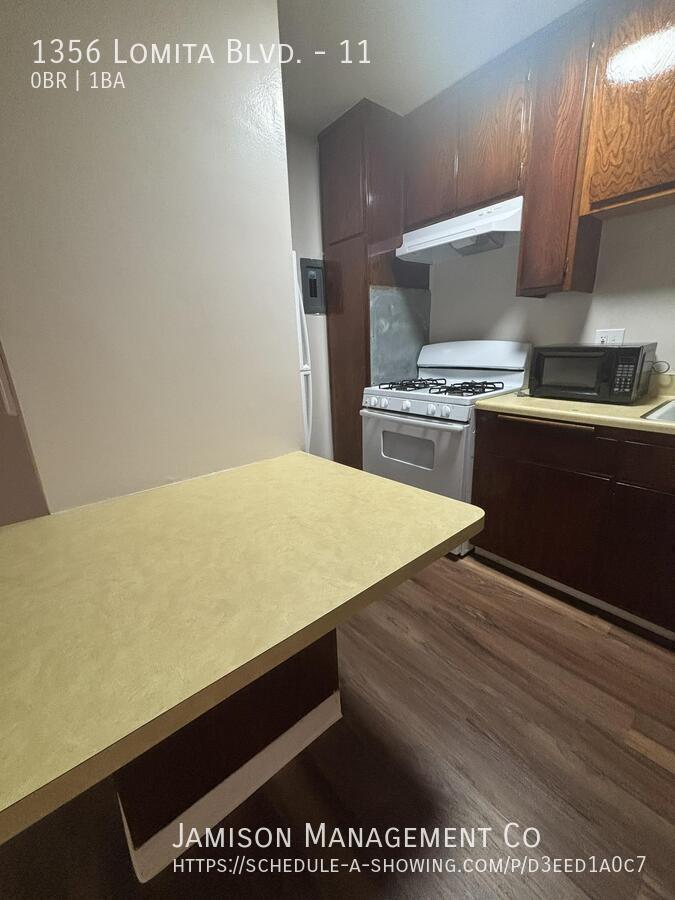 There is currently a 0 Bed 1 Bath Apartment for rent listed at 1356 Lomita Blvd. It is Available Now.