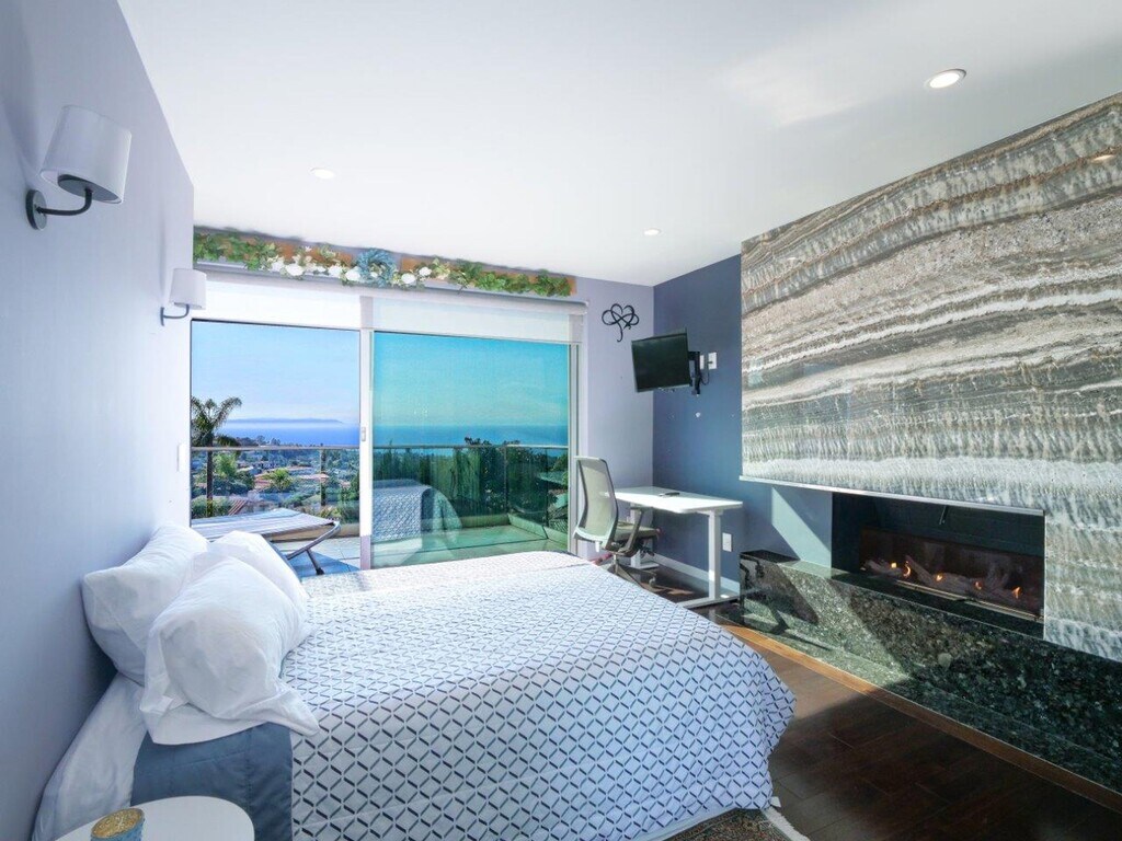 Welcome to a truly one of a kind modern remodeled showstopper in Palos Verdes Estates with panoramic ocean views. Upon entry you are greeted by an open concept floor plan with sprawling ceilings and fully collapsible glass sliding doors that open up to your own private balcony that says "sit here, watch the sunset." This designer home has 5 spacious bedrooms and 6 gorgeous bathrooms. The bottom level provides an additional bonus room for hosting which includes a second kitchen or could be a separate office space. Enjoy time outside on the flat lawn followed by a dip in the pool or jacuzzi surrounded by fruit trees.