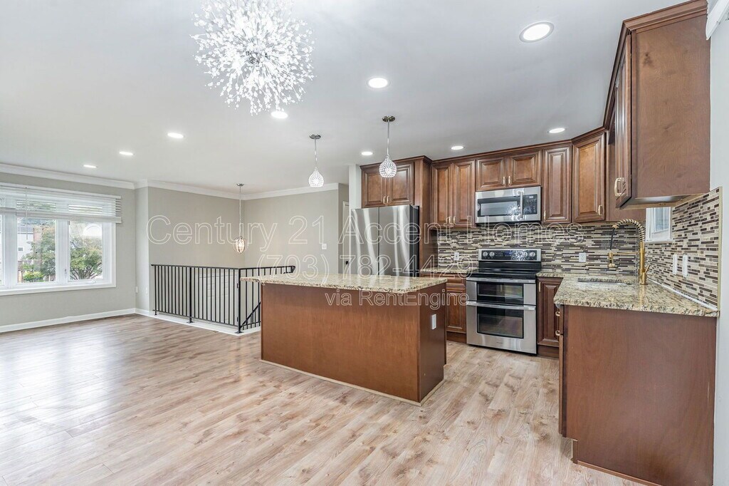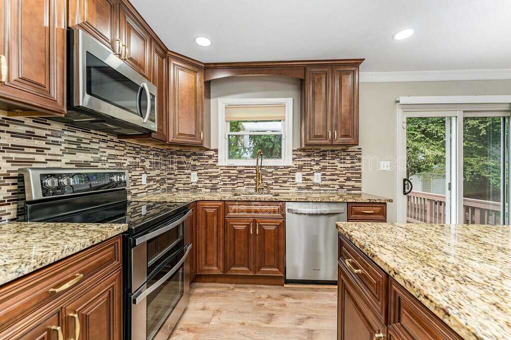 Welcome to this stunning 4-bedroom, 2-bathroom split foyer home, thoughtfully renovated to blend modern comfort with timeless charm. From the moment you arrive, the fresh exterior paint, lush landscaping, and inviting entryway set the stage for the beauty that awaits inside. Step into a bright and airy foyer where a contemporary chandelier introduces the home’s elegant style. The main level features an open-concept design with expansive living, dining, and kitchen areas that flow effortlessly together. Sunlight streams through large windows, enhancing the warmth of the luxury vinyl floors and creating an inviting ambiance throughout. The kitchen is designed for both everyday living and entertaining, complete with granite countertops, a center island, stainless steel appliances, and abundant cabinetry. The dining area opens directly to a spacious deck overlooking the fenced backyard, perfect for outdoor dining, weekend barbecues, or simply relaxing in your own private retreat. Upstairs, generously sized bedrooms provide ample space and storage, while the newly remodeled bathroom showcases spa-inspired finishes and a sleek, modern design. The lower level offers a versatile family room anchored by a cozy fireplace, ideal for gatherings or quiet evenings at home. Additional highlights include a one-car garage, a driveway with extra parking, and a large shed for storage or hobbies. Situated in a highly desirable neighborhood near schools, parks, shopping, dining, and major commuter routes, this home combines style, function, and convenience in one exceptional package. All residents are enrolled in the Resident Benefits Package which includes HVAC air filter delivery, on-demand pest control, vetted licensed and insured vendors, and much more! More details upon application. By submitting your information on this page you consent to being contacted by the Property Manager and RentEngine via SMS, phone, or email.