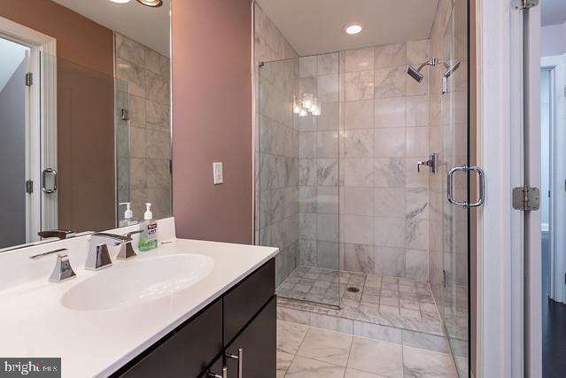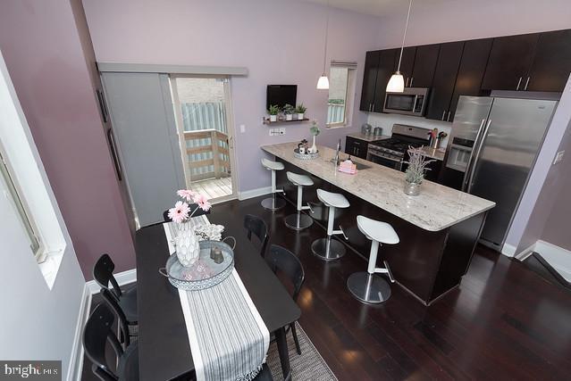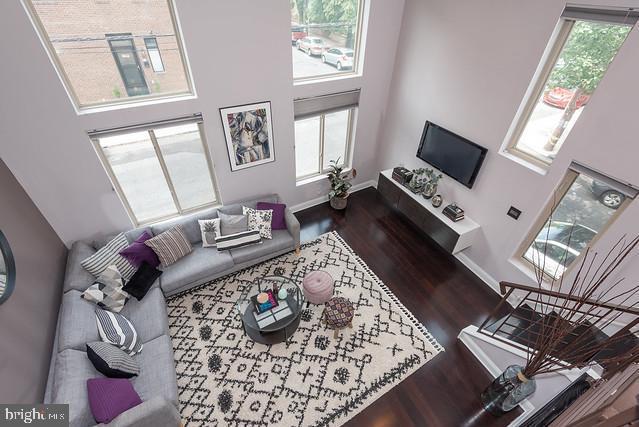 Unique, modern corner property located directly across from Hancock Park, & newer tennis courts/pickle ball courts, offering a bright, open floor plan and spacious layout ideal for comfortable living and entertaining. An electronically controlled garage provides direct access into the home, with ample street parking available for a second vehicle or guests. The large eat-in kitchen features extensive granite countertops, stainless steel appliances including a 5-burner gas range, dishwasher, and garbage disposal, along with white subway tile backsplash and tall dark wood cabinetry. Just off the kitchen is a private outdoor patio with street access, perfect as a secondary entrance or outdoor retreat. High ceilings and recessed lighting flow throughout the home, highlighted by a dramatic living room with soaring 15+ foot ceilings, crown moldings, and expansive wall space. Floor-to-ceiling windows fill the home with natural light. The second level offers a spacious primary bedroom with crown moldings, dual closets, and a Juliet balcony overlooking the patio. The en-suite bathroom features marble tile and a large walk-in shower. The third level includes two generously sized bedrooms, another Juliet balcony, a full bathroom, and a laundry closet with energy-efficient Whirlpool washer and dryer. Enjoy stunning Center City skyline and Ben Franklin Bridge views from the third floor and private roof deck. The fully finished lower level is wired as a media room, providing flexible additional living space. Rich espresso-colored hardwood floors run throughout, and dual-zone heating and cooling ensure year-round comfort. This impeccably maintained home is just steps from the best of Fishtown and Northern Liberties- Suraya, Laser Wolf, & W.M. Mulherin's and many more. A quick 5-minute walk to the Market-Frankford Line (“ELâ€) offers easy access to Center City.