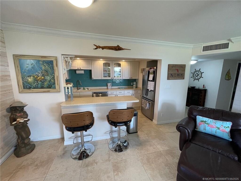 Exper?en?? Fir?t Class R???rt Living in this furni?hed gr?und floor oceanfront condominium on Hutchinson Island. Available for short term rental with 90-day minimum term at $5,500/month for winter season (November & December 2025) and at $3,500/month for the off-season (May through October). A tasteful,upgraded coastal interior greets you as you enter the spacious living area,flanked by sliders and large windows showcasing sparkling Atlantic Ocean vistas. A long deck,bordered by lush landscaping,is accessible from the living room and both bedrooms. Leases less than 6 months are subject to a 12% hotel tax. All utilities included; tenant pays $2,000 refundable security deposit,full rent payment 30 days prior to move-in,$200 cleaning fee,$100 application fee,$75 booking fee and $30 background check fee. Suntide offers private beach access,tennis,a pool,bocce ball,shuffleboard,a clubhouse,billiards,an oceanside deck & garage parking,all in the perfect location. MLS# M20050473