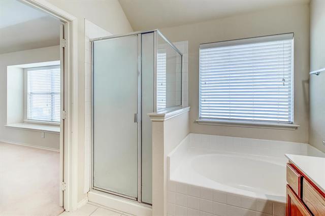 Charming single-story brick home located in the desirable Grayhawk subdivision of Frisco. This well-designed floor plan offers 3 bedrooms, 2 bathrooms, two living areas, and a formal dining space, providing flexibility for everyday living and entertaining. The island kitchen opens seamlessly to a spacious breakfast area and family room, creating an inviting central gathering space. The family room features a corner gas-start fireplace and ceiling fan, while large windows bring in excellent natural light. The primary suite is thoughtfully positioned for privacy and showcases a vaulted ceiling, ceiling fan, and a wall of windows. The ensuite bath includes dual sinks and a separate shower. Secondary bedrooms are split from the primary suite, ideal for added separation. Out back, enjoy a board-on-board privacy fence that extends along the driveway, plus the added convenience of an automatic entry gate — a rare and valuable feature. The formal dining room is versatile and can easily function as a second living area, home office, or flex space. A well-cared-for home in an established neighborhood with convenient access to shopping, dining, and major roadways.