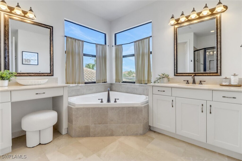 Welcome to this stunning 5-bedroom,4-bathroom plus den home located in the luxurious gated enclave of Marbella Isles. Thoughtfully designed with both comfort and elegance in mind,this spacious two-story home boasts an open floorplan,wide-plank wood flooring,and crown molding throughout the first floor,creating a warm and inviting atmosphere. A bedroom and full bathroom are conveniently located on the first floor,providing flexibility for modern living. The heart of the home is the beautifully appointed kitchen,featuring custom white cabinetry,granite countertops,stainless steel appliances,and ample storage for all your culinary needs. Upstairs,a versatile flex space offers endless possibilities,it’s perfect as a game room,library,or home office. The primary suite is a true retreat,complete with a tray ceiling,walk-in closet with custom built-ins,and a luxurious ensuite bath featuring dual sinks,a large corner soaking tub,and an oversized glass-enclosed shower. Sliding glass doors from the main living area open to a serene caged lanai,where a sparkling saltwater pool and integrated spa are surrounded by mature landscaping for ultimate privacy - ideal for relaxing or entertaining. Marbella Isles is known for its exceptional amenities,including a clubhouse with a full-sized indoor basketball court,game rooms,fitness center,and community spaces for social gatherings. Outdoors,residents enjoy tennis courts,pickleball,and a resort-style pool with a water play area. Ideally located in the heart of Naples,this home offers easy access to world-class dining,shopping,golf courses,entertainment,and the white-sand beaches. This is Florida living at its finest.