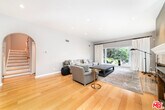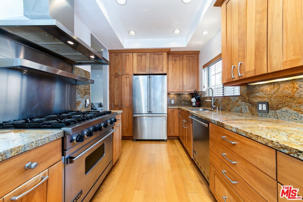 Searching for an elegant Westwood/Century City haven that feels like a private sanctuary? Set atop a gentle knoll, this 5-bedroom, 3-bath fully furnished move-in ready residence delivers just that with its classic two-story brick facade and sprawling front lawn! Inside, discover a formal living room where picture windows, maple hardwood floors, and a sleek marble fireplace create an inviting backdrop for conversation. Host lively celebrations in the dining alcove, complete with a dry bar and glass doors opening to the secluded backyard. The kitchen's handsome wood cabinetry, gleaming granite countertops, Viking 6-burner gas range, and new Viking fridge are ready for any culinary adventure. Relax under soaring ceilings and skylights in the generous primary suite, where a luxurious ensuite offers a serene escape. Upstairs, find plenty of built-in storage alongside your comfortable retreats, while the main-level bonus room adds versatility for overnight guests or remote work. A detached 2-car garage, 6-car driveway, lush landscaping, and a family area wired for sound enhance your experience. With easy access to Fairburn Elementary, UCLA, Westwood Village, Century City mall, Santa Monica, and Beverly Hills, this is urban life at its finest! MLS# 25575273