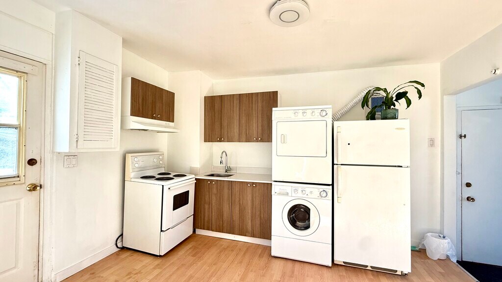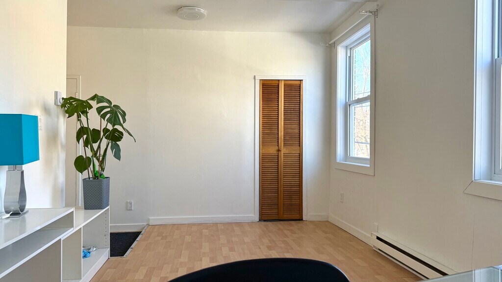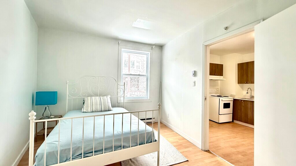 Spacious 3 ½ with Balcony – Steps from Atwater Market A large 3 ½ apartment on the second floor is now available. It features one good-sized closed bedroom, a separated kitchen and living room, and a long balcony overlooking the back. Rent & Lease: · Rent: $1,300 per month · Promotion: Special promotion available on one-year leases—inquire for details! · Utilities Not Included: Hot water, electricity, and WiFi are extra. Included Amenities: · Electrical appliances: fridge, stove, washer, dryer. · Double bed Prime Location: · Facing the iconic Atwater Market · 8-minute walk to Metro Lionel-Groulx station · Steps from Super C grocery store · 2-minute walk to the Lachine Canal and sports paths Contact Five One Four Five Eight Five Five Three Six Seven