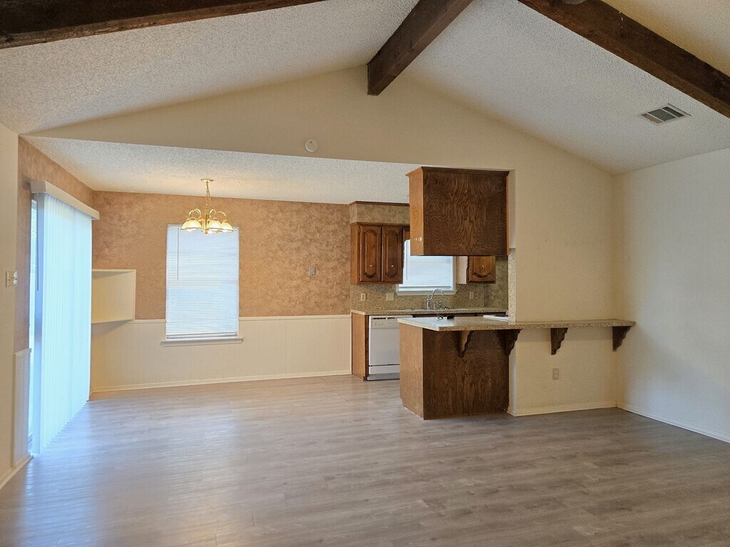 3 Bedroom, 2 bathroom home near Hewitt Dr.! Living area has all plank flooring, vaulted ceilings, and a fireplace. Kitchen includes oven, stovetop, dishwasher, and ample cabinet space. Primary suite features a private bathroom with a walk-in shower. Fenced yard and two-car garage included! Pets allowed with pet fee; breed restrictions listed here:
