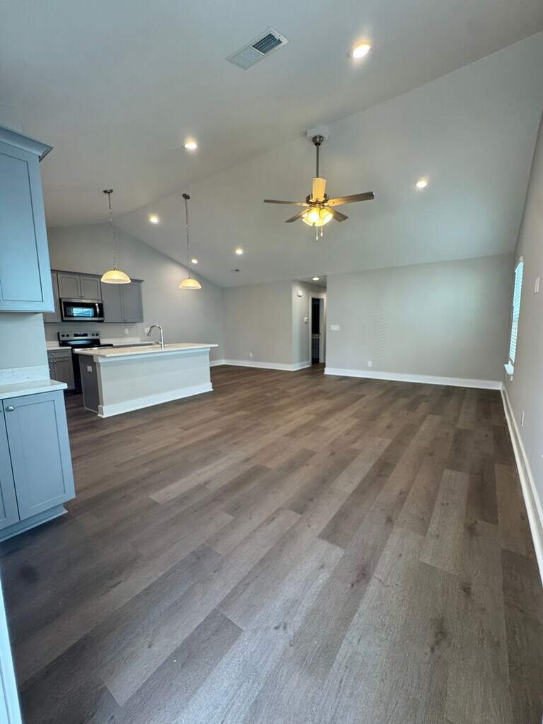New Villa Home, located on the Brawley Peninsula. One level open floor plan features great room, kitchen/dining, 3BR, 2BA with additional flex room and 2 car garage. Designer kitchen with cathedral ceiling, quartz countertops, stainless appliances including dishwasher, side by side refrigerator/freezer, ice maker, range, microwave. Primary bath has double vanity, step-in shower. Second bath has large soaking tub. Covered porch and patio. Heating/cooling is high efficiency electric heat pump. Electric vehicle charging outlet. Pets allowed with some breed/weight restrictions and additional fees. Non-smoking Property. Located near golf courses, wellness facilities, grocery, and shopping. Pictures are of a similar property.