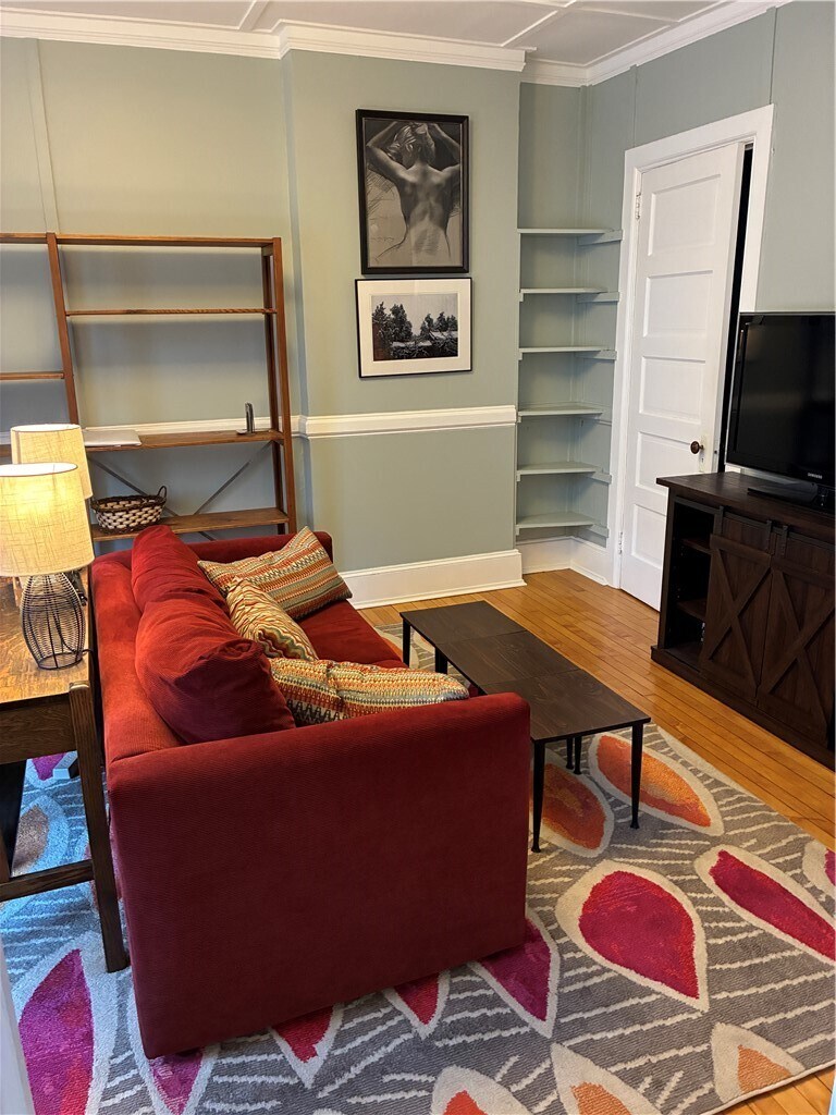 A rare and beautiful find in the heart of downtown Ithaca awaits you. A 1900 Square foot masterpiece of an apartment in one of the loveliest historical buildings on The Commons. Completely renovated five years ago,this impeccably decorated and maintained home features high ceilings throughout. The spectacular living room,dining room,and chef's kitchen flow for effortless enjoyment. Large windows and skylights drench the space with light. Two very large bedrooms and two full baths,as well as a large bright music room/den complete the space. Storage is abundant. Walk-in closets in bedrooms and den,and large utility closets that include an in-home laundry. New customized heating and cooling units ensure low-cost utilities. Steps from restaurants,shopping,and seasonal events happening all outside your door. It is one of the only two residential units in the building,so your privacy and comfort in this third floor unit is assured. Completely furnished and equipped down to the dishes and cutlery,this lovely home needs just you and your belongings. Available January 1st.