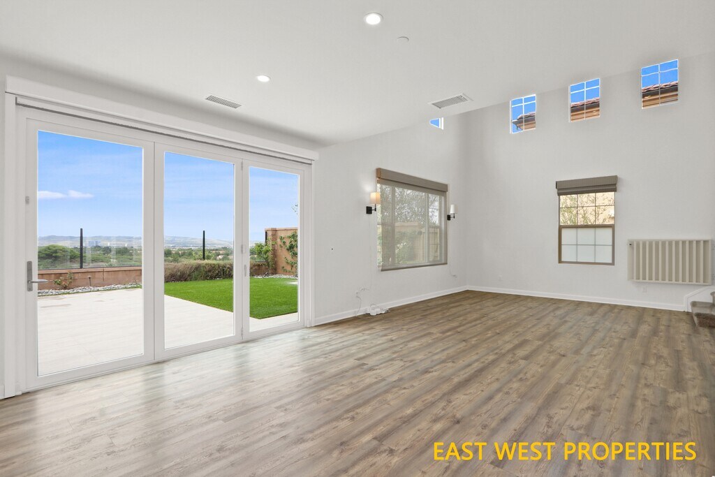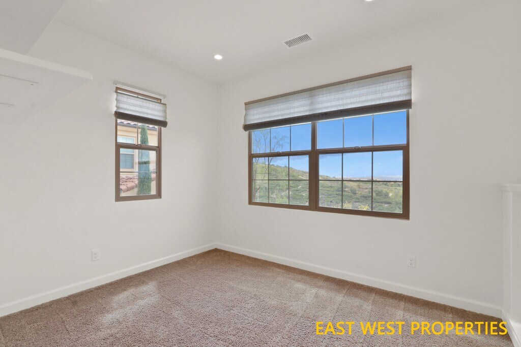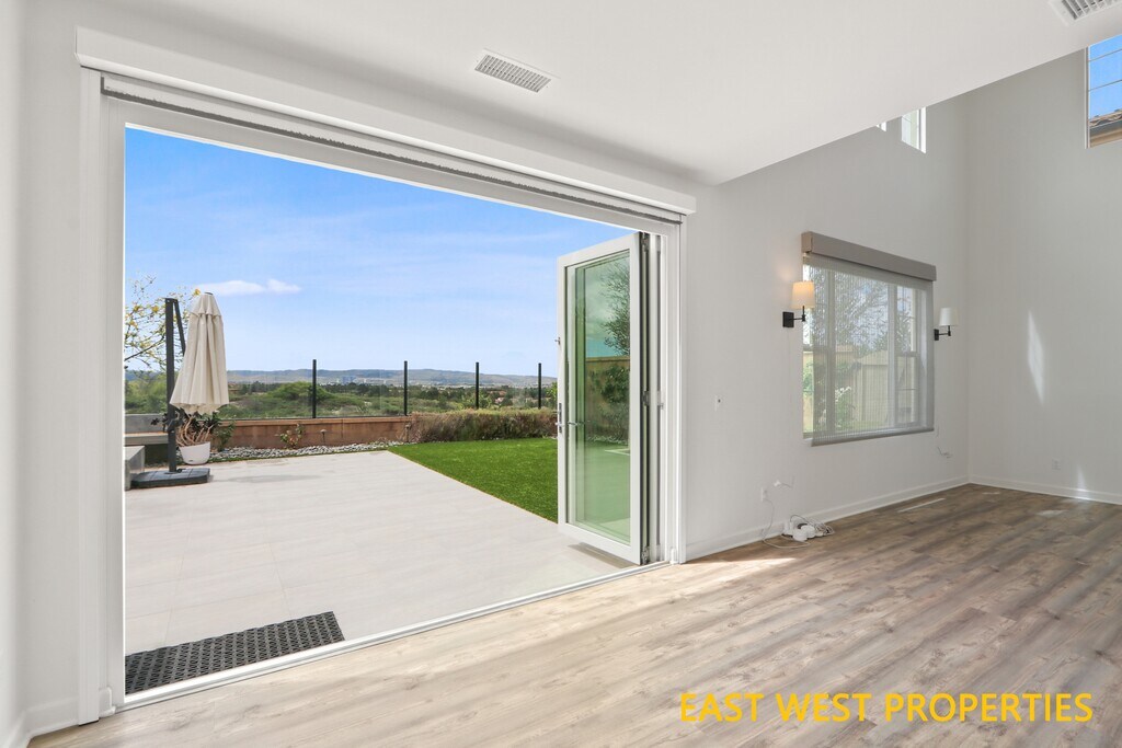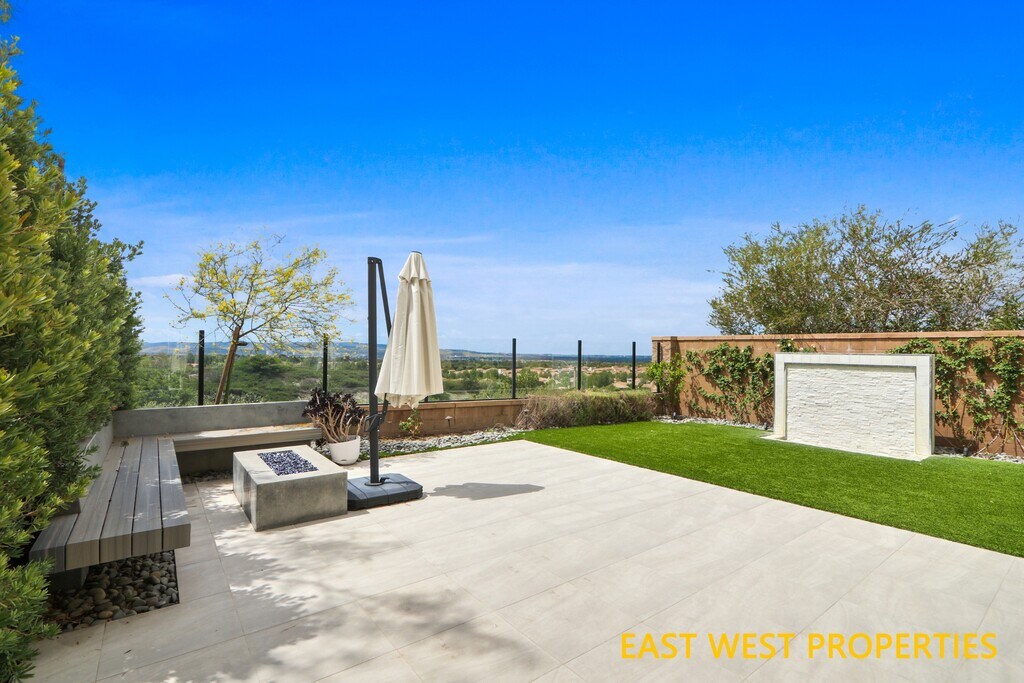 VIEW! VIEW! VIEW! Don't miss out this beautiful home features breathtaking PANORAMIC CITY VIEW! It offers 4 bedrooms, 3.5 bathrooms, and a loft, and is located in the highly sought-after Portola Springs community in Irvine. The home is completely detached and situated on a corner lot, with a convenient downstairs bedroom featuring an en-suite bathroom. The beautifully designed private backyard includes an elegant fountain, a built-in fire pit, and artificial grass for low maintenance, creating an ideal setting for relaxing or entertaining. Inside, the home welcomes you with a bright and open living room featuring soaring ceilings and high-set windows that fill the space with natural light. Luxury vinyl flooring throughout first floor adds warmth and elegance. The gourmet kitchen is equipped with quartz countertops and premium stainless-steel appliances. The first-floor bedroom with an en-suite bathroom offers flexibility for guests or multi-generational living. Upstairs, a versatile loft provides space for a second living area, playroom, or home office. The primary suite is a private retreat featuring dual vanities, a soaking tub, a glass-enclosed shower, and a walk-in closet. Two additional bedrooms share a full bathroom with dual sinks. Additional highlights include direct access to a two-car garage and built-in storage racks. Nestled in Portola Springs Village, residents enjoy resort-style amenities including 15+ parks, multiple pools, sports courts, and the 25-acre Portola Springs Community Park. Surrounded by scenic hiking and biking trails, this peaceful retreat is also minutes from shopping, dining, and entertainment. Woodbury Town Center, Orchard Hills Shopping Center, Cypress Village Shopping Center, and Irvine Spectrum Center are all nearby, with the Spectrum just 6 miles away. Zoned for top-rated Irvine schools: Loma Ridge Elementary, Jeffrey Trail Middle School, and Portola High School. Water softener, EV charger, refrigerator, washer, and dryer are all included. Move-in immediately.
