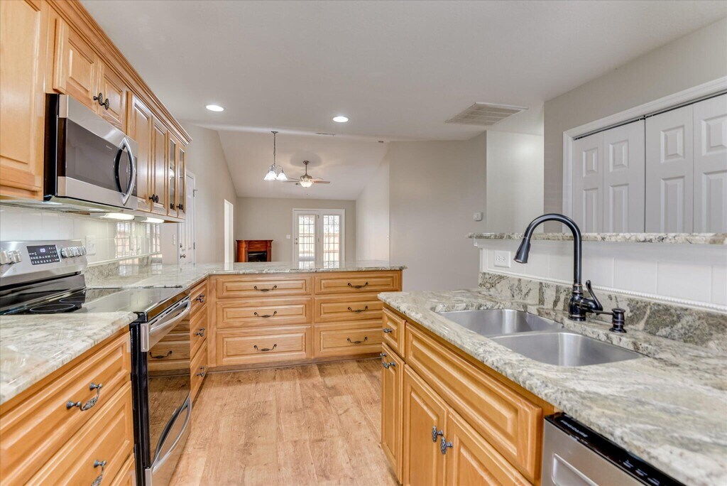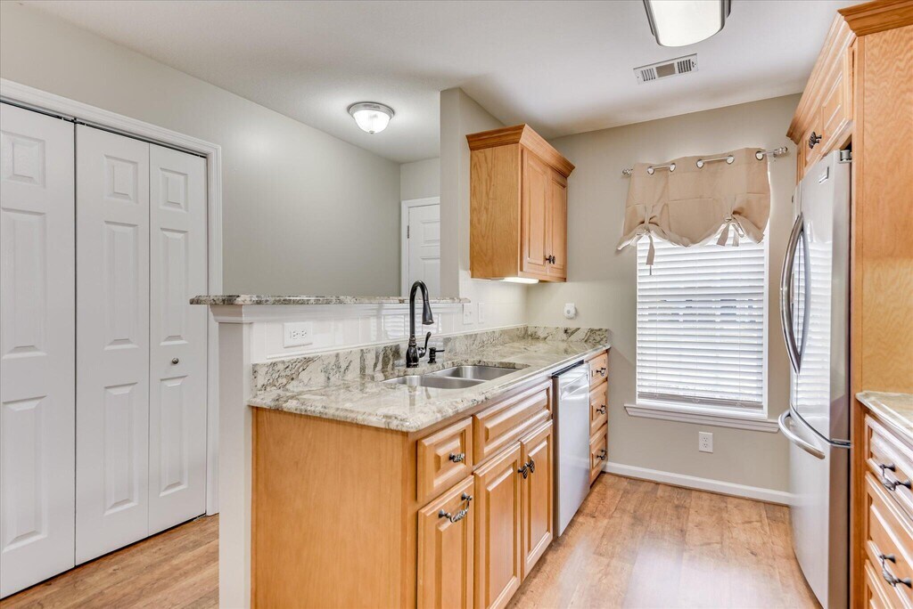Beautifully renovated end-unit townhome available for lease,offering 2 bedrooms,2 full baths,and a versatile sunroom that can easily serve as a home office,or flex room thanks to its closet for added storage. This well-maintained home features stylish upgrades and an inviting open layout. The upscale kitchen has been fully renovated with custom cabinetry,granite countertops,stainless steel appliances,tile backsplash,and a large breakfast bar that overlooks the main living area,perfect for everyday living or entertaining. The dining area flows seamlessly into the spacious great room,highlighted by vaulted ceilings,a cozy gas fireplace,and beautiful flooring throughout. French doors lead to a privacy-fenced backyard with an oversized covered patio,ideal for relaxing or enjoying outdoor time. The owner's suite offers a walk-in closet and an updated bathroom featuring a fully tiled custom shower,granite countertops,and tile flooring. The secondary bedroom is conveniently located near the second full bath,which also features granite counters and tiled floors. Additional features include fresh paint throughout,LVP flooring in all living spaces and bedrooms (no carpet),2-inch blinds on all windows,a spacious walk-in laundry room,pull-down attic storage,and a single-car garage with two additional exterior parking spaces. Added bonus: the owner will cover the monthly trash and sewer costs,making this an even better value. Tenant is responsible for all other utilities. Conveniently located with easy access to I-20 (Exit 5),I-520,medical facilities,shopping,and restaurants. HOA covers front lawn maintenance only,while the tenant maintains the backyard area inside the privacy fence. The owner is a licensed realtor. Nonsmoking. School zones must be verified as they are subject to change. HOA covenants may apply. All information contained herein is deemed reliable,but should be verified.