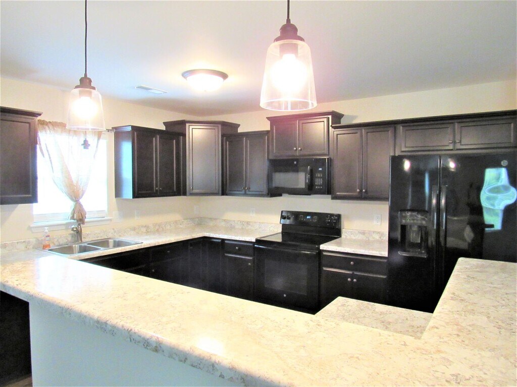 Beautiful 3 bedroom, 2 bath home situated in a quiet cu-de-sac featuring two car garage. Open floor plan with split bedroom system. Spacious living room featuring vaulted ceiling and fireplace. Gorgeous, modern dream kitchen featuring island with bar seating and dining area leading to the tranquil back patio overlooking the large, wooded backyard. Master bedroom w/ trey ceiling and master bath featuring dual vanities, soaking tub and separate shower. Two additional, nice sized bedrooms and full bath. 1 pet permitted with non-refundable pet charge and pet screening. No virtual tours. No Smoking. Application charges apply.