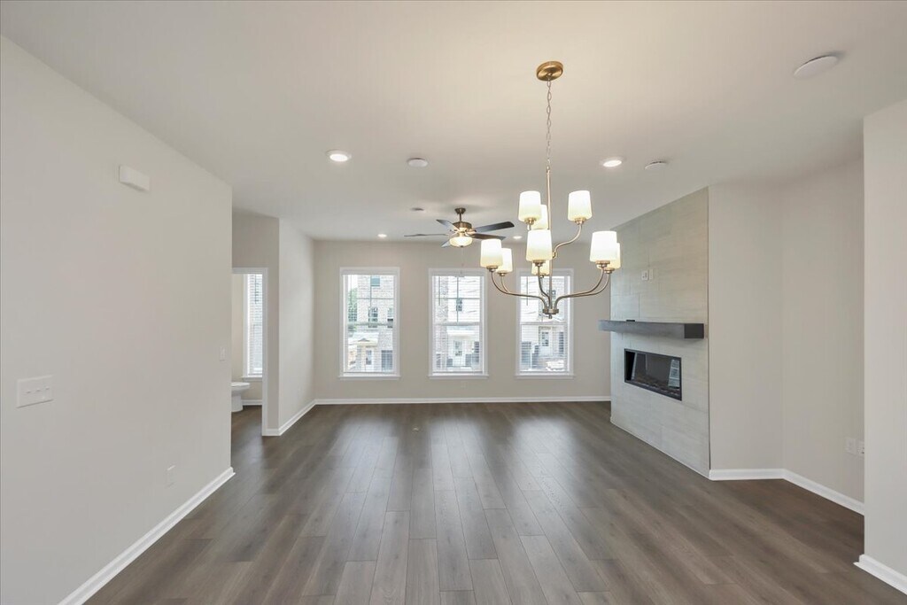 This luxurious three-story townhome features an inviting, spacious design ideal for modern living. The main level boasts an open-concept kitchen that flows seamlessly onto the deck, creating a perfect connection between indoor and outdoor spaces. Overlooking the casual dining area and gathering room, the kitchen is ideal for both entertaining and everyday family living. Upstairs, the owner's suite offers a serene retreat with a large walk-in shower, dual vanities, and an expansive walk-in closet. This level also includes a secondary bedroom, a full bathroom, and a conveniently located laundry room. The lower level adds even more versatility, featuring an additional bedroom and a full bath—perfect for guests, a home office, or a private getaway. Designed with comfort, style, and convenience in mind, this townhome provides ample space to suit your lifestyle.