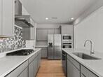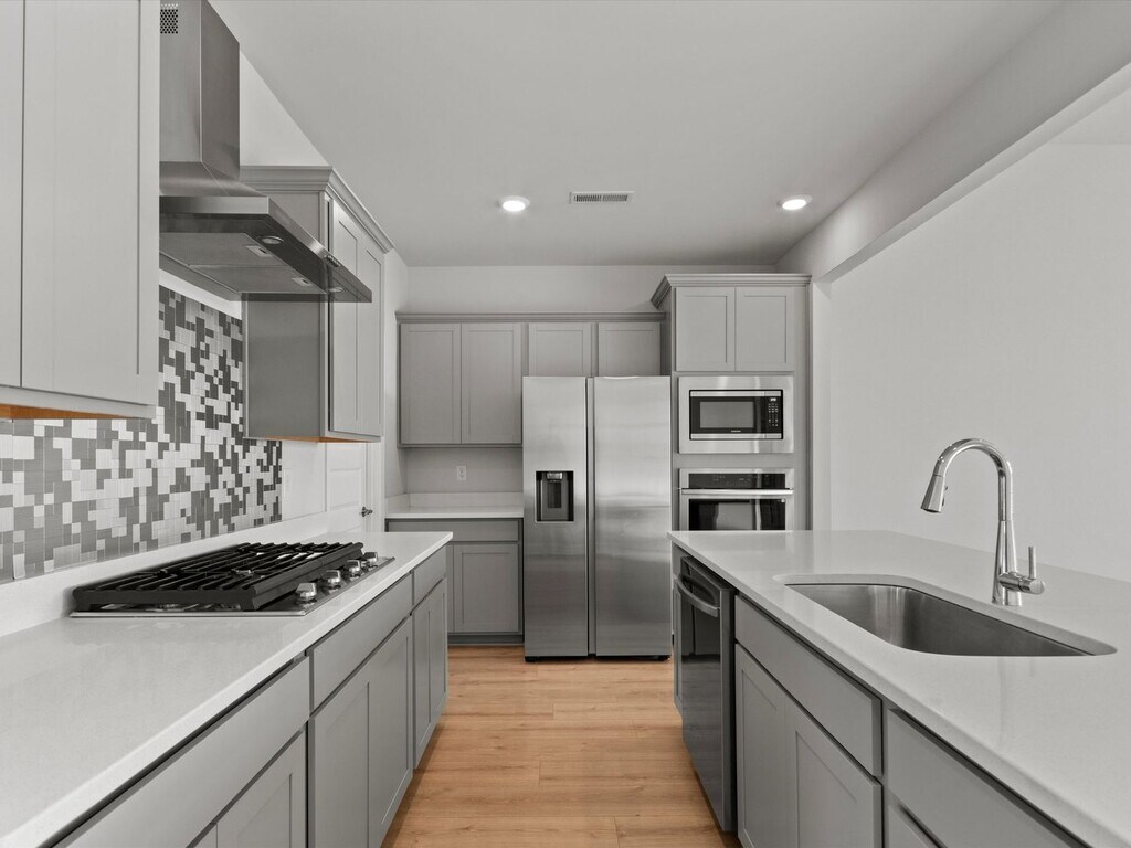 This beautifully maintained home offers 3 bedrooms and 2 full baths with hardwood flooring throughout the main living areas. The spacious living area is open to the kitchen, featuring custom cabinetry, quartz countertops, a tile backsplash, gas cooktop with separate oven, refrigerator, and a generous pantry—perfect for both everyday living and entertaining. The owner’s suite includes a private luxury bath with a double vanity, tiled shower, and a large walk-in closet. The additional bedrooms are spacious and share a well-appointed hall bath. Completing the home is a rare three-car rear-entry garage. Ideally located within walking distance to restaurants and shopping, this is truly a must-see home. Call today to schedule your showing.
