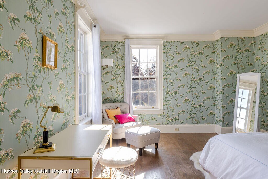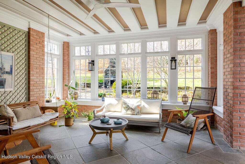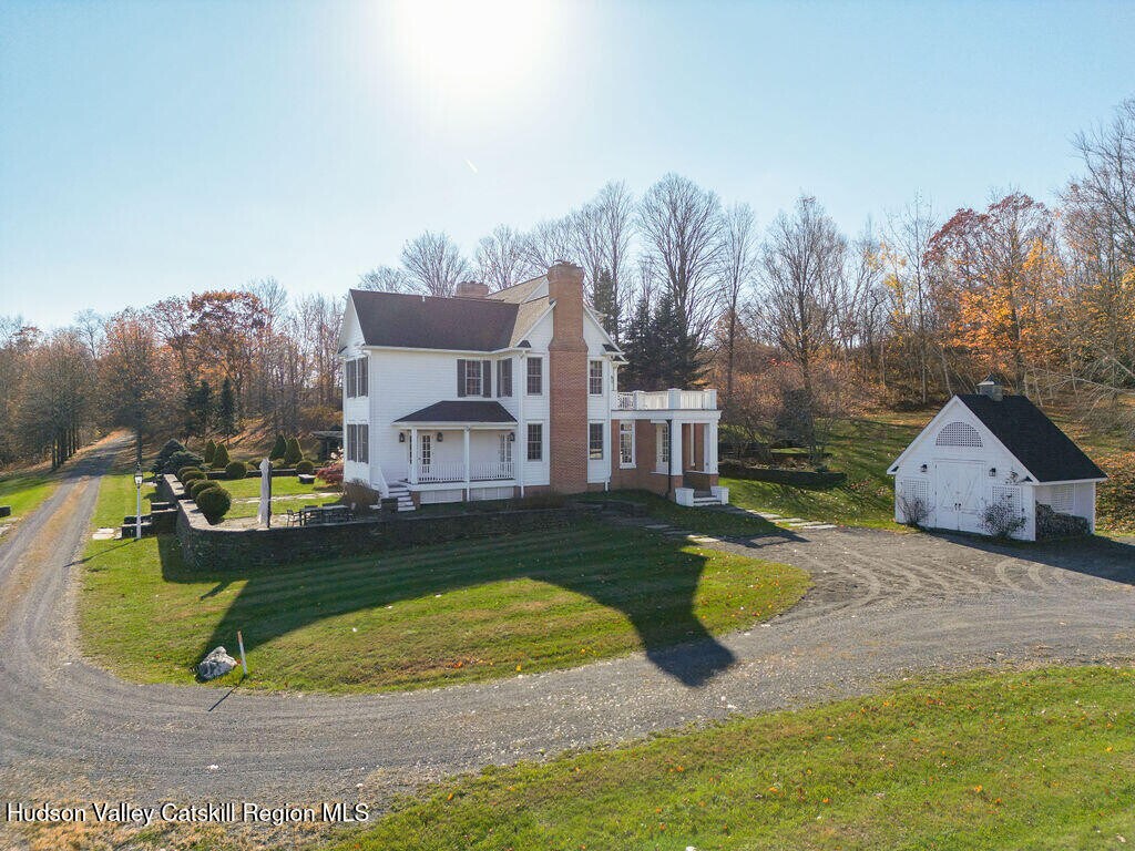 Perched high on a quiet mountainside in one of Hillsdale's most coveted locations,this modern farmhouse sanctuary set on 50+ private acres blends timeless Hudson Valley romance with the ease of updated,contemporary living. Accessed via a private road and tucked discreetly into the hillside,this calming and zen-like retreat offers complete privacy—just minutes from the center of town. Reminiscent of the landscapes that moved the Hudson River School painters,the far-reaching views of the Berkshire Mountains are nothing short of breathtaking. The house features a primary suite with fireplace,private balcony,individual dressing areas and bathroom with jetted soaking tub. Four other large bedrooms,a gourmet cook's kitchen with butler's pantry and generously proportioned living areas that include a formal dining room,formal living room and 2 sun rooms. Three fireplaces complete the picture of a welcoming estate property ready to entertain and host your family and guests. The grounds boast beautiful stonework and manicured gardens that overlook a deep and clean swim pond complete with dock and pond house. Conveniently located to all the best that Columbia County and the Berkshires have to offer. Located 20 minutes each to Hudson NY and Great Barrington MA,and just minutes from Catamount ski resort. 2 hours from NYC.