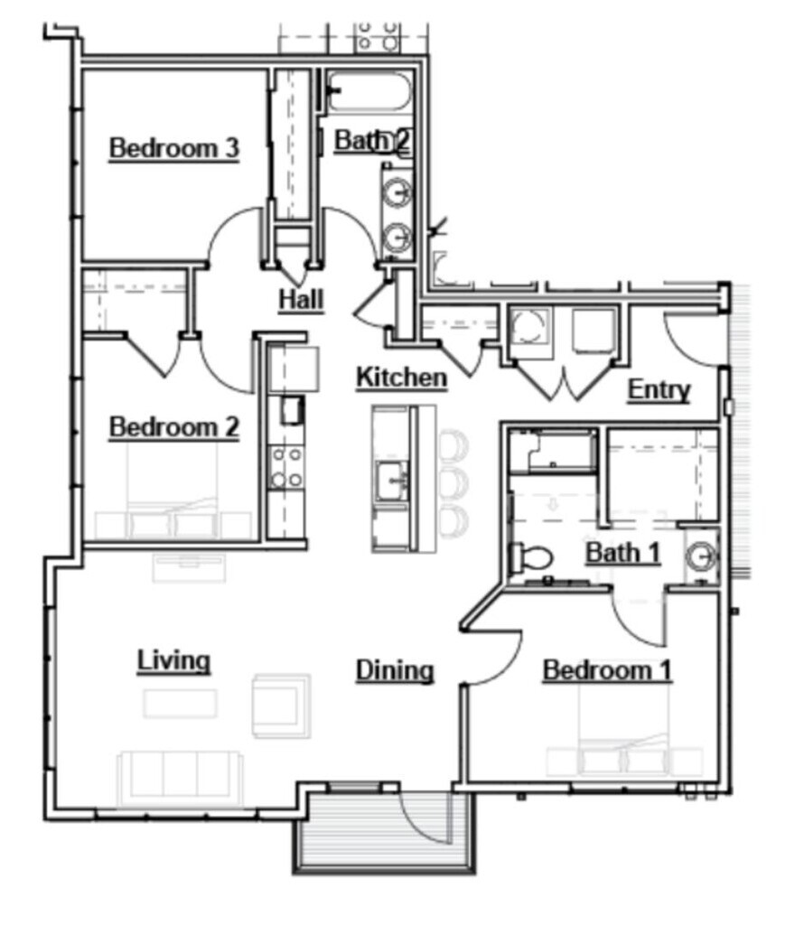 - 3BR, 2BA