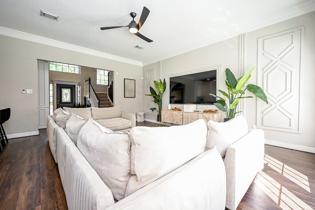 Welcome home to this Gorgeous turn-key freshly renovated Estate home in the Champions area. Beautifully updated,this home features an open floor plan with seamless luxury vinyl plank flooring throughout first floor. Formal Dining w/updated lighting. Family Room is open to the kitchen,perfect for entertaining. Modern gas fireplace is 2 sided to Family Room & Breakfast Room w/bay windows. Kitchen is a cook's dream with bright white cabinetry; stainless appliances; HUGE center island,quartz counters; & a farm house sink. Primary Bedroom with a "wall of windows" & a jaw dropping Tulum inspired primary bathroom w/oversized tub,separate seamless glass shower & 2 sinks w/new cabinetry & granite counters & new mirrors. Custom walk-in closet. Upstairs sky-scrapping vaulted ceilings include a game room & a flex room w/French doors. 3 large bedrooms & 2 baths. Backyard oasis you will never want to leave,2023 pool & modern landscaping with a fully covered patio,kitchen & entertainment area. MLS# 11728640