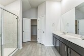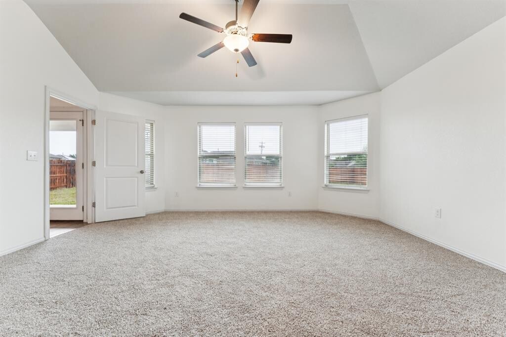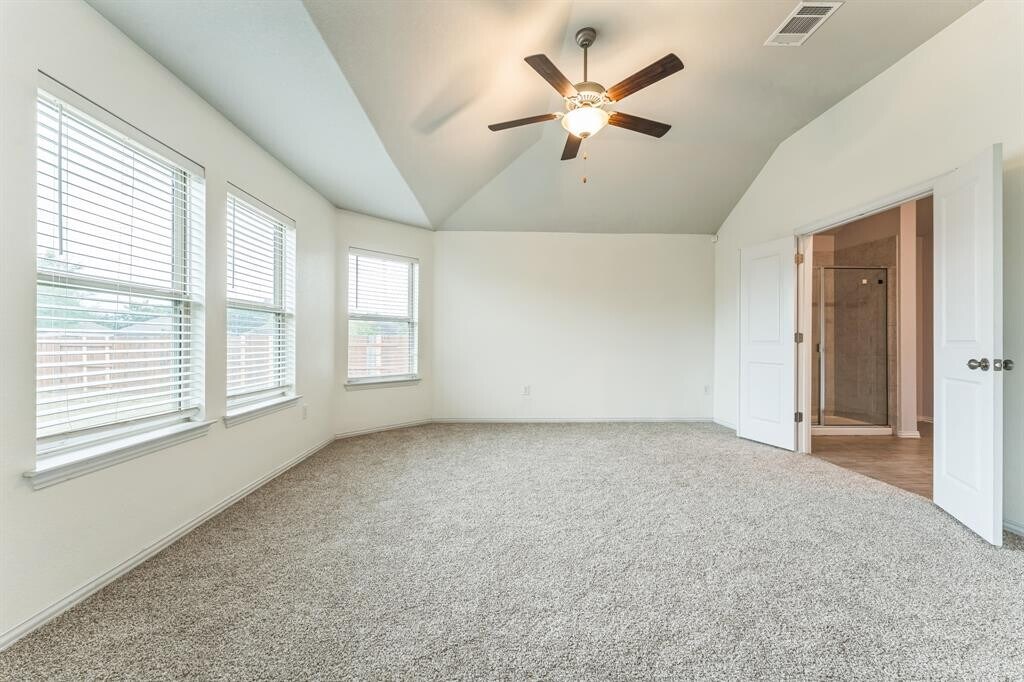 Check out this beautiful home nestled in the ShadowGlen neighborhood in Manor! This property contains 4 nice size bedrooms, 2 full bathrooms and 2,021 square feet! The family room is open and has plenty of natural lighting! Kitchen is open to family room and is equipped with stainless steel appliances, a gas range, light granite countertops with dark brown finished cabinets, pantry and an oversized center island that serves as a breakfast bar! The spacious primary bedroom has a ceiling fan and an en-suite consisting of a double vanity, extended walk-in shower and a walk-in closet. 3 additional bedrooms. Covered patio and a huge fenced in backyard! Nice landscaping! Don't miss this opportunity!