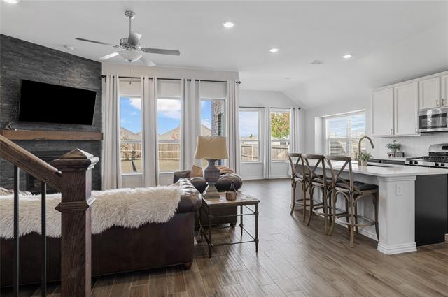 Welcome to this gorgeous, family friendly neighborhood with a community pool! Terrific 2400+ SF, 3 bedroom, 2 bath, 2-Half bath home with a 2 car garage and an open floorplan. Enjoy preparing your meals in the impressive kitchen with its large eat-at island. The kitchen is equipped with ample cabinets and generous quartz countertops, a walk-in pantry and comes with a full compliment of appliances - gas range, microwave, dishwasher and refrigerator. The eat-in dining area-breakfast nook adjacent to the kitchen is convenient for family meals and entertaining. Tall ceilings and large windows offer lots of natural light and a feeling of space throughout the home. The interior compliments any style with its neutral tile floors, plush carpet and large windows. The living area has a large feature wall that acts as a focal point and compliments the beautiful wood and wrought-iron staircase leading upstairs. The primary bedroom boasts a private ensuite with dual sinks, a soaking tub, a separate shower and a walk-in closet. Other bedrooms offer plush carpet, ceiling fans, and sizable closets. The office off the main entry has French doors and is perfect for working from home or alternatively could be used as a study. The bonus room upstairs can be used as a media room or as a second family room. The fully fenced backyard offers privacy and has a covered back porch and an oversized concrete patio for outdoor entertaining and lounging. Lush green landscape surrounds this beautiful house. The seller will consider selling the furnishings if the prospective tenant is interested. Hurry and make an appointment. This one won’t last long!