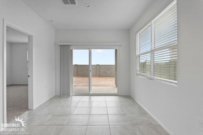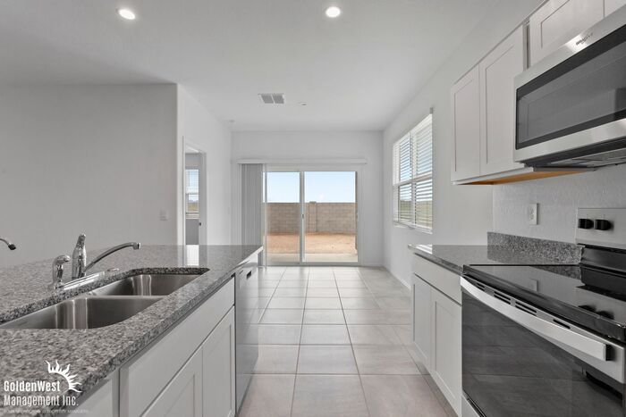 Charming 3Bdm 2Ba Home in Coolidge! Step into a bright and spacious living room, featuring an open layout, neutral tones, and large windows that fill the space with natural light. The open-concept design creates a seamless flow, perfect for everyday living and entertaining. The kitchen showcases sleek white cabinetry, stainless steel appliances, granite countertops, and a large center island with additional seating space. Its modern finishes and generous storage make it both functional and inviting for cooking or gathering. Bedrooms offer soft carpet flooring, generous closet space, and natural light that creates a warm and comfortable atmosphere. The bathrooms include clean, modern finishes with granite countertops, spacious vanities, and well-appointed fixtures. The full bathroom offers a tub/shower combination with bright, fresh tilework.A dedicated laundry room provides convenience with washer and dryer included, along with ample room for storage and organization. Step outside to a large backyard, offering a blank canvas ready for your outdoor vision perfect for gatherings, play, or creating your own desert oasis. The covered patio provides a great shaded area to enjoy Arizona evenings. Tenant pays all utilities. Pets with approval via process. This property allows self guided viewing without an appointment. Contact for details.