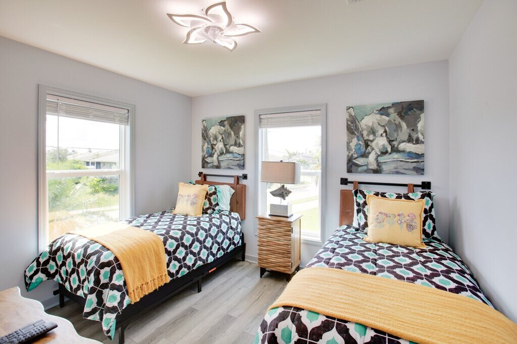 Feel at home in this 2-bedroom, 2-bath vacation rental house in Fort Myers. This single-story home is built on stilts and requires an exterior staircase for entry. This home features smart TVs, a washer and dryer, an en-suite bathroom, and a covered deck. The spacious yard is perfect for enjoying the Southwest Florida weather. The kitchen is equipped with an electric stove, oven, dishwasher, a Keurig coffee maker, a microwave, cooking basics, dishware, and flatware. Central heating and A/C, linens, towels, a hair dryer, and complimentary Wi-Fi are also provided. Parking is available in the driveway/under the home for 2 vehicles. Enjoy easy access to beautiful Fort Myers beaches, nearby outlets, and local golf courses. Smoking, pets, events, parties, and large gatherings are not allowed. Guests must be at least 55 years old to book. A photo ID may be required upon check-in. [SI]