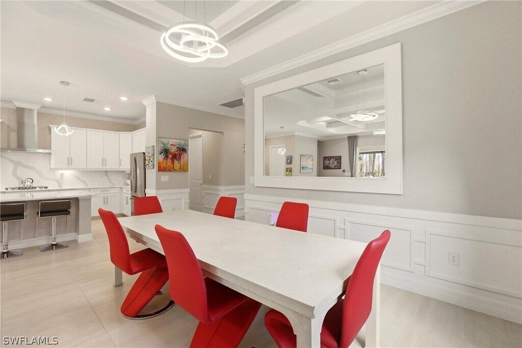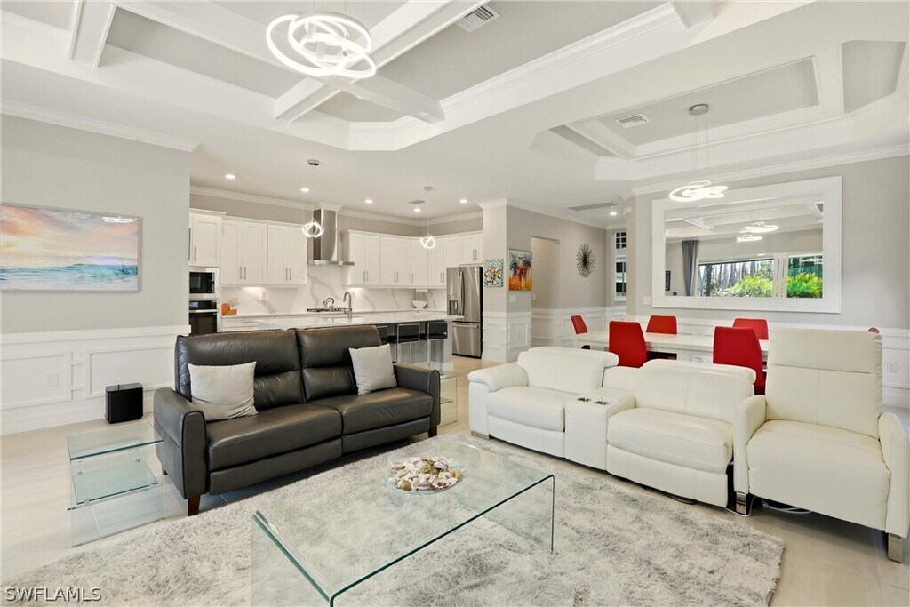 Welcome to luxury living in Vista at WildBlue! This beautifully appointed 4-bedroom,3 full bath pool and spa home is offered fully furnished and available for 6 months or longer,providing the perfect opportunity to enjoy resort-style living in one of Southwest Florida’s most sought-after gated communities. From the moment you step inside,you are greeted by an expansive open-concept layout featuring elegant tray and coffered ceilings,detailed accent trim work,designer lighting,and abundant natural light. The spacious great room seamlessly flows into the gourmet kitchen,complete with sleek quartz countertops,a large center island with bar seating,stainless steel appliances,modern cabinetry,and a gas cooktop—ideal for entertaining or everyday comfort. A dedicated dining area and thoughtfully curated furnishings create a warm yet sophisticated atmosphere throughout the home. The luxurious primary suite serves as a private retreat,offering generous space,tranquil views,and a spa-inspired en-suite bath with dual vanities and a large walk-in glass shower. Three additional bedrooms provide flexibility for guests,a home office,or multigenerational living,all styled with comfort and functionality in mind. Step outside to your private screened lanai where indoor and outdoor living blend effortlessly. Enjoy the sparkling heated pool and spa,expansive paver deck,and a fully equipped outdoor kitchen with built-in grill and vent hood—perfect for relaxing evenings,entertaining,or soaking in the serene preserve views and lush tropical landscaping. Located in the prestigious Vista at WildBlue community in Estero,residents enjoy access to world-class amenities including a clubhouse,resort-style pool,fitness center,tennis,pickleball,boating opportunities,and scenic walking trails. Conveniently situated near RSW Airport,Gulf Coast Town Center,Miromar Outlets,FGCU,dining,and Southwest Florida’s beautiful beaches. This turnkey furnished rental offers style,comfort,and the ultimate Florida lifestyle—just bring your suitcase and start enjoying paradise. Available for 6+ month lease.