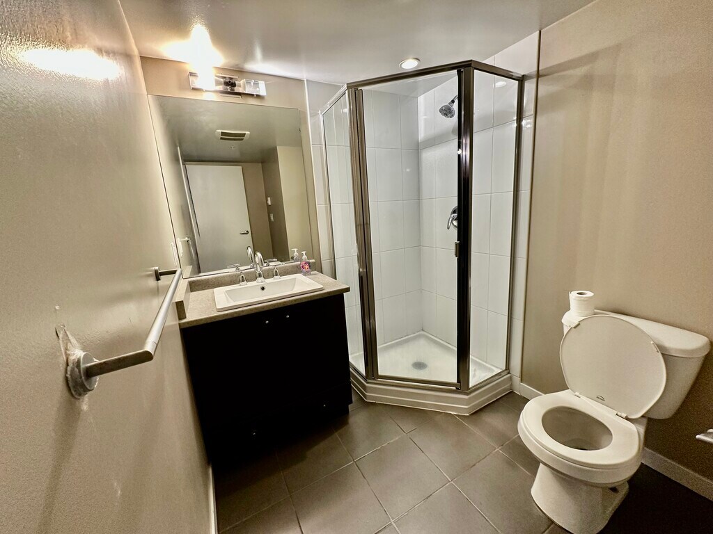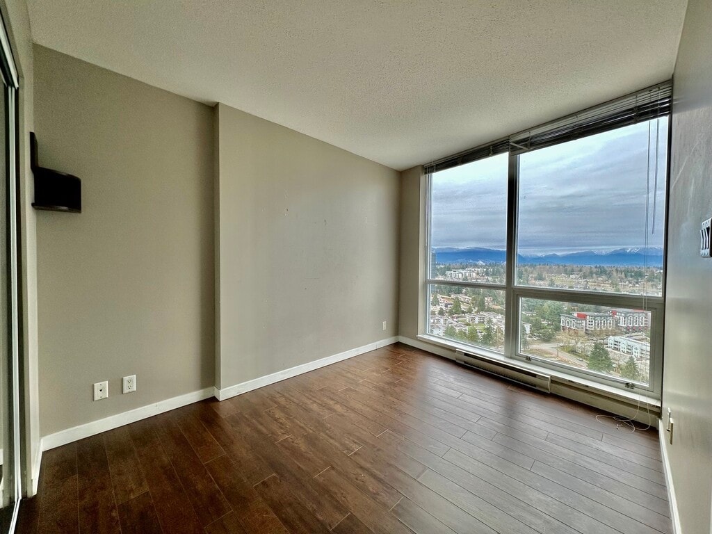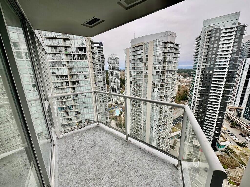 IMMEDIATELY AVAILABLE - Bright 2 Bed, 2 Bath Condo with City Views & Balcony Modern 2 bedroom, 2 bathroom condo offering approximately 748 sq. ft. plus a covered balcony in a high-rise building in Surrey City Centre. Features floor-to-ceiling windows, an open-concept living and dining area, and a functional kitchen with full-size appliances and stone countertops. The primary bedroom includes a private ensuite, while the second bedroom is ideal for a guest room or office. Includes in-suite laundry, laminate flooring, and a covered balcony with city views. Conveniently 2 minutes from the King George SkyTrain station, shopping, restaurants, and amenities!