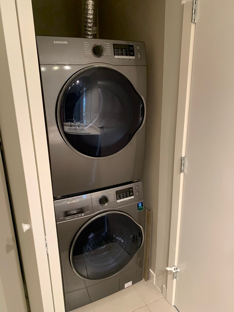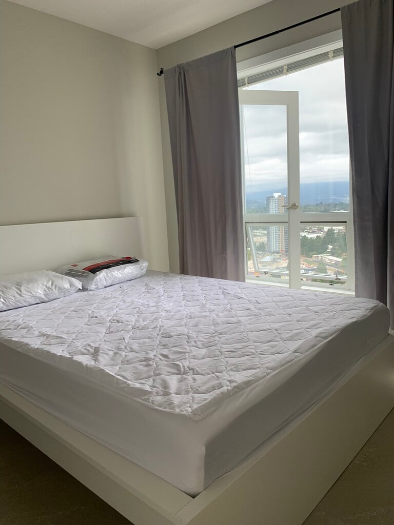 Furnished, clean, 1 bedroom, 1 bathroom suite for rent at King George Skytrain/Surrey Central. Top floor suite just steps away from the King George Skytrain station and bus loop. Perfect for commuters --- arrive at the Skytrain station within 2 minutes of leaving the building, downtown Vancouver an easy 40 minute train ride away. Surrey Central shopping mall, groceries, restaurants, amenities, parkland, all within under 5 minutes walking distance (across the street). (VERY CONVENIENT). Location: 13618 100 Ave, Surrey (Infinity Tower) -In suite washer dryer -Standard kitchen appliances -1 Dedicated underground parking stall -Secure building -Fully equipped gym -Hydro/internet not included in rent -No smoking -No pets -Minimum 1 year lease -Security deposit of 1/2 month's rent -Tenant is required to pay the building move-in fee ($100) prior to move-in -Credit check upon request. Fee payable by renter Please provide some basic information about yourself in the reply: -Who would be occupying the rental (first and last name) -Your general situation -Your monthly income, source of income/occupation/employer -Estimate of how long you expect to rent for