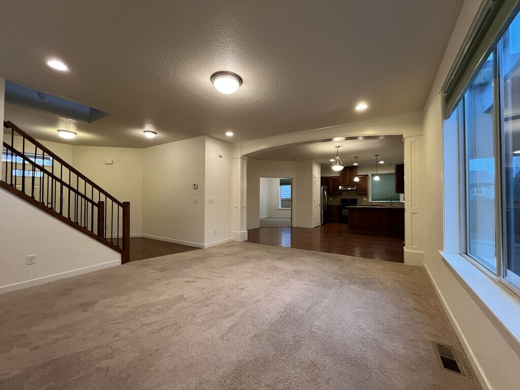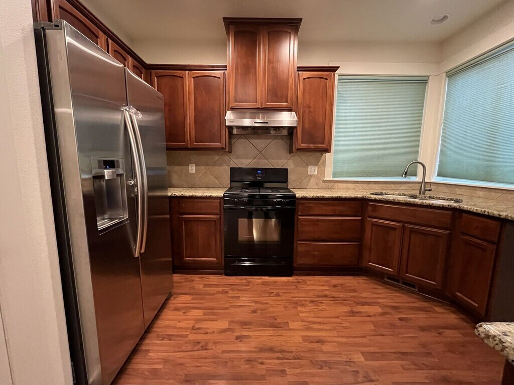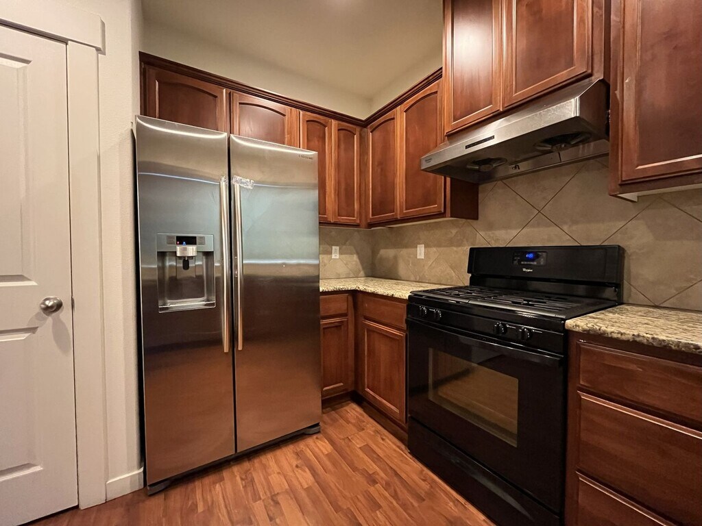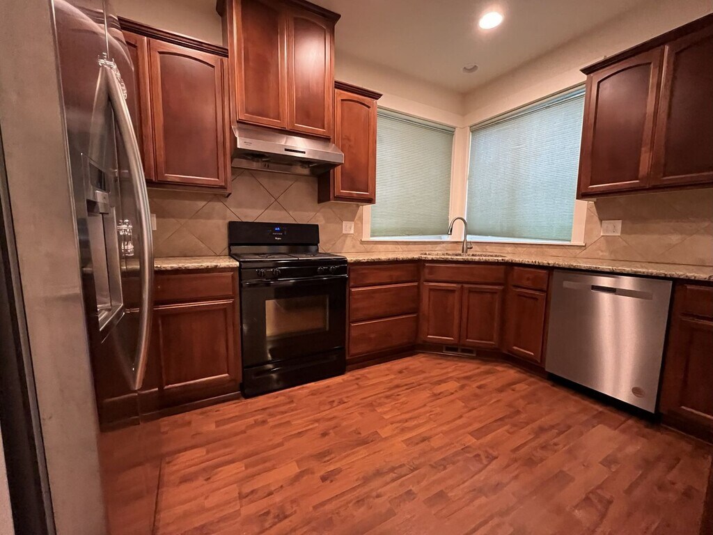 This expansive four-bedroom, three-bathroom residence offers 2,588 square feet of beautifully designed living space and a highly functional floor plan ideal for both everyday comfort and large-scale entertaining. The home features a wide driveway, a three-car garage, and a well-maintained front lawn. A Japanese maple tree accents the walkway to the covered entrance, creating a welcoming approach. Inside, the entryway showcases laminate flooring and a grand staircase that anchors the home’s central design. Adjacent to the stairs is a bright and open living room with plush carpeting, a long picture window, and a centrally located fireplace. Built-in alcoves on both sides of the fireplace create perfect spaces for bookshelves or display pieces, while high clerestory windows add additional light and architectural interest. The kitchen and dining room both feature laminate flooring, forming a cohesive and attractive space for hosting. The kitchen offers extensive granite countertops, modern appliances, a tall refrigerator, a gas cooktop and oven, a stainless steel double-basin sink, a dishwasher, and abundant wooden cabinetry. A closet pantry provides additional storage. The dining room is generously sized and includes a sliding glass door that opens directly to the backyard and covered patio. The main level also includes a full bedroom with carpeting, offering an ideal setting for a home office, media room, or guest suite. A full bathroom located conveniently across the hall adds flexibility and ease of use. Upstairs, the second level is fully carpeted and begins with a loft area at the top of the staircase—an excellent option for a reading nook, homework zone, or secondary entertainment space. The spacious primary suite features vaulted ceilings and a large window that creates a bright and serene atmosphere. The en suite bathroom includes a double vanity with an extended mirror, a soaking tub positioned beneath a picturesque window, a step-in shower with glass doors, and access to a substantial walk-in closet. Three additional bedrooms on this level are all generously sized, featuring standard sliding-door closets, ample natural light, and comfortable carpeting. A full bathroom with a long single vanity and a tub-shower combination serves these bedrooms. A centrally located laundry room with washer and dryer hookups adds everyday convenience. The fully fenced backyard offers an expansive outdoor retreat with a large covered patio ideal for year-round enjoyment. Whether entertaining, gardening, or relaxing, this space provides abundant versatility. The attached three-car garage further enhances storage, parking, and utility options. YouTube Link: Call or Text Our Leasing Agent to schedule a showing! English Speaking Spanish Speaking Visit our website to apply and view other homes we have available! Do you need property management services? Maximize your income and cut your costs!