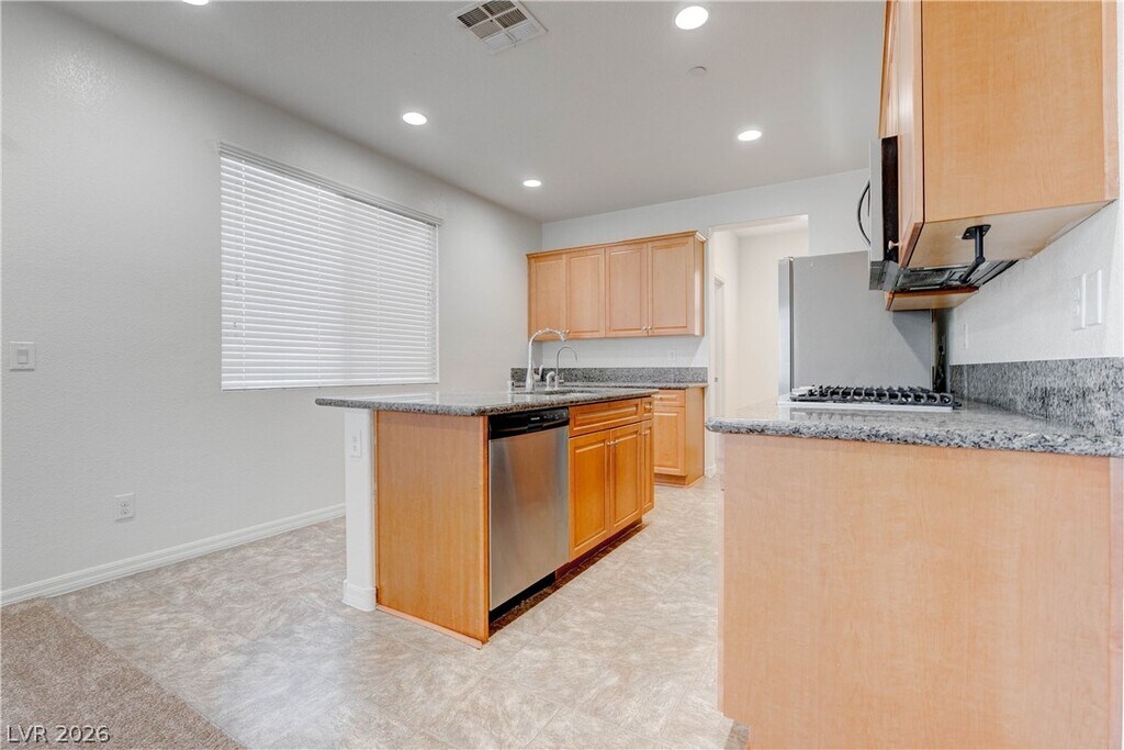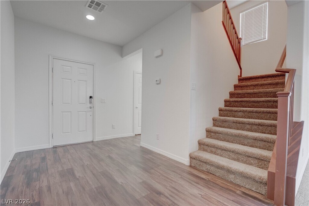 Experience modern comfort in this newly built home ideally situated in the heart of Green Valley, just 15 minutes from the Las Vegas Strip. A welcoming private courtyard sets the tone as you arrive, offering a charming space to relax before stepping inside. The first floor showcases elegant ceramic tile flooring, granite countertops, and rich maple cabinetry that beautifully complement the open-concept kitchen and living areas. Upstairs, the spacious primary suite features a walk-in closet, while a versatile loft provides the perfect setting for a home office, media room, or additional lounge space. The true highlight is the rooftop deck, where you’ll enjoy sweeping mountain views and an inviting outdoor retreat ideal for entertaining or unwinding under the desert sky. With a park directly across the street, convenient freeway access, nearby schools, and abundant shopping and dining just minutes away, this home offers the perfect blend of style, location, and everyday convenience.