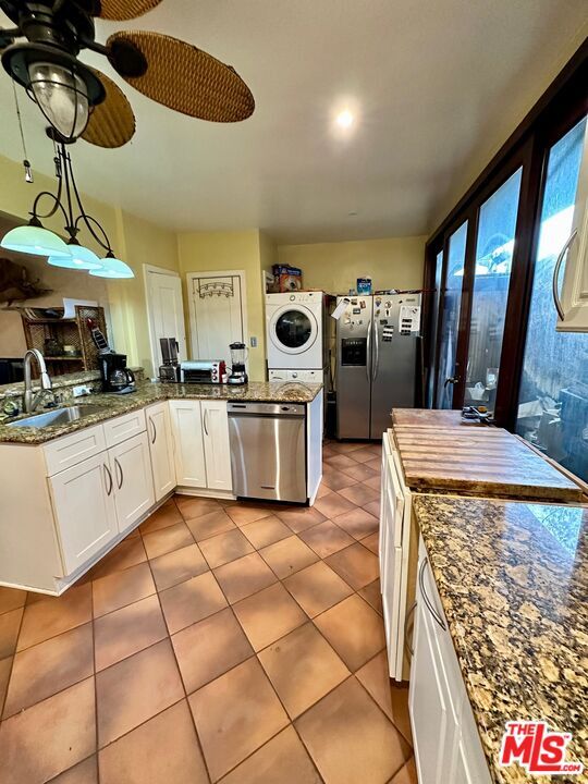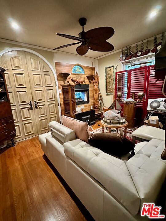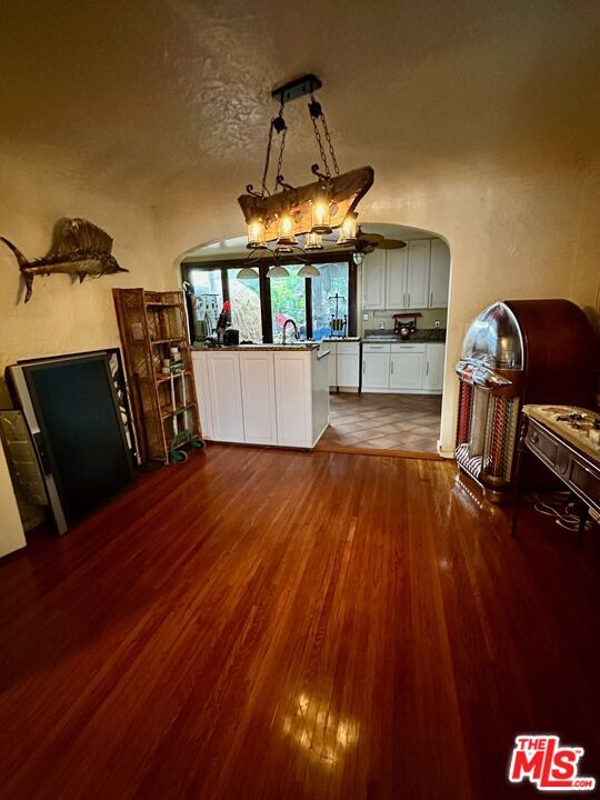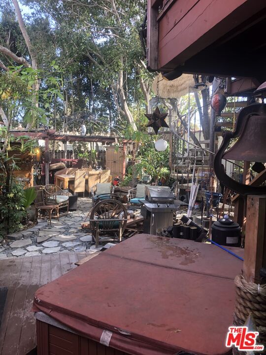 Beautiful Tuscan/Spanish-style side-by-side duplex unit with private basement and exceptional indoor outdoor living. This upgraded two-story residence features gleaming hardwood floors, a Batchelder fireplace, tiled kitchen floors, and a service laundry area with washer/dryer.The kitchen offers granite countertops, center island with dishwasher, five-burner range, and side-by-side refrigerator with ice maker. Spacious primary suite includes walk-in closet, ceiling fan, and private bath. Second upstairs bath features decorative tile with separate tub and shower; convenient half bath downstairs.A huge private basement provides excellent storage or bonus space. Enjoy a serene garden retreat with fountains, patio gazebo for outdoor dining, hot tub, and an upstairs deck with indoor/outdoor fireplace.Prime Mid-Wilshire location with easy access to Beverly Hills, Hollywood, and the I-10. Short walk to great local restaurants and coffee shops. Owner pays water. Tenant pays gas and electric. MLS# 26636809