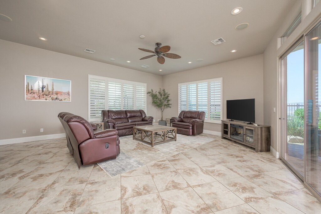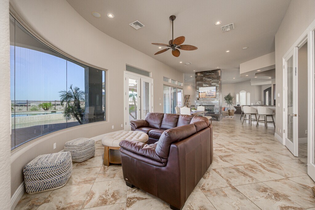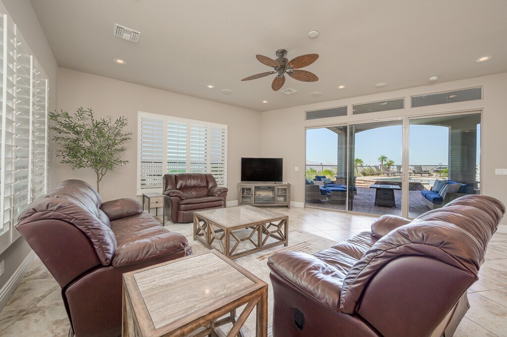 Enjoy a luxurious stay in this spacious 4-bedroom, 3.5-bath home in the gated Laughlin Ranch community. With over 4,200 sq ft of living space, this fully furnished retreat offers comfort, privacy, and incredible views of the Colorado River, mountains, and Laughlin casinos. Inside, you'll find an open floor plan, vaulted ceilings, a chef's kitchen with granite counters and double ovens, and multiple gathering spaces perfect for family and friends. Step outside to your own private saltwater pool and spa, covered patio with dining space, and a backyard designed for relaxation. The oversized 6-car boat-deep garage is ideal for storing vehicles, toys, or golf carts during your stay. Guests also enjoy access to Laughlin Ranch amenities including golf, spa, clubhouse, fitness center, and dining—all just minutes away. This home is turn-key and ready for your monthly getaway perfect for snowbirds, executives, or anyone seeking upscale desert living. Step into a lifestyle of luxury and convenience in this spectacular fully furnished estate in Laughlin Ranch. This sprawling 4,271 sq ft, 4-bed / 3.5-bath home features an open concept living space with vaulted ceilings, gourmet kitchen with granite and stainless steel appliances, and floor-to-ceiling windows capturing panoramic views. Outside, enjoy your private saltwater pool and spa, covered patio, desert landscaping, and 6-car garage (boat-deep) with extra storage. Located on a quiet cul-de-sac, the property sits in a highly sought gated community offering golf, fitness, spa, and clubhouse amenities just a 5-minute stroll away. With sweeping views of the river, mountains, and nearby casino, plus all high-end touches, this home is ideal for executives, families, or travelers seeking upscale comfort and flexibility. Available for monthly furnished lease. Utilities, maintenance, HOA, and furnishings all included
