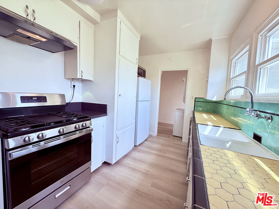 Charming upstairs unit in a Spanish fourplex in the heart of the very happening Miracle Mile. Loads of natural light fill this beautiful apartment with breathtaking views. Large living room has built in shelving and coat closet and extra dinning room/family room. Hardwood floors have been refinished throughout the unit, with this super large 2 bedrooms and 1 bath unit around 1,300 square feet have newly installed wood floor. Newly updated Kitchen with complete new stove/oven, granite counter top and dishwasher. Bathroom has been refinished vintage cast iron tub. Parking is tandem in driveway. MLS# 26663765
