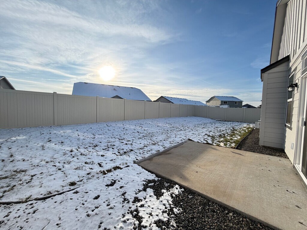 Welcome to the Brand New Hayden Home, a stunning new construction located in the heart of Hayden, ID. This home boasts three spacious bedrooms and two full bathrooms, offering ample space for comfortable living. The home is equipped with a gas forced air furnace and an air conditioner, ensuring year-round comfort. The kitchen is a chef's dream with stainless appliances and quartz countertops. The living room features a cozy gas fireplace, perfect for those chilly evenings. The home also includes LVP flooring throughout, adding a touch of elegance and durability. Outside, you'll find a covered front patio, perfect for enjoying your morning coffee or evening relaxation. The fenced backyard provides a private space for outdoor activities. The home also features a spacious 3-car garage, providing plenty of storage and parking space. Experience the perfect blend of comfort, convenience, and modern living in the Brand New Hayden Home.