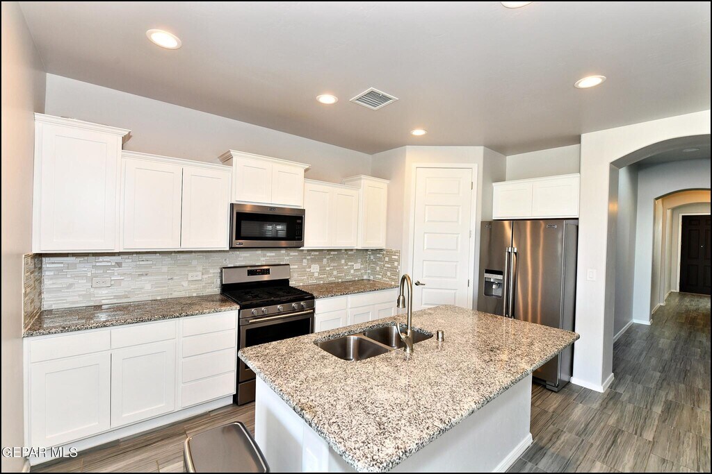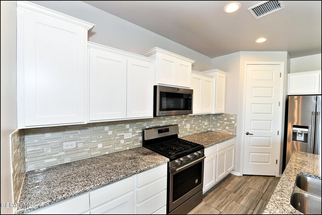 Luxury meets livability in this upscale rental located in El Paso's desirable Morningside community. The home's modern design features an open-concept living space with tray ceilings,recessed lighting,and wide-tile flooring that echoes high-end resort aesthetics. The kitchen is outfitted with granite counters,stainless steel appliances,and a tiled backsplash that adds visual interest. The primary bathroom offers dual vanities,a deep soaking tub,and walk-in shower framed by an arched stone surround. A private backyard oasis awaits with a covered patio,synthetic grass,and firepit area perfect for gatherings. Enjoy proximity to Franklin Mountains State Park and local shopping centers. Deposit-Free Renting service to Obligo qualified renters,fees may apply.