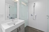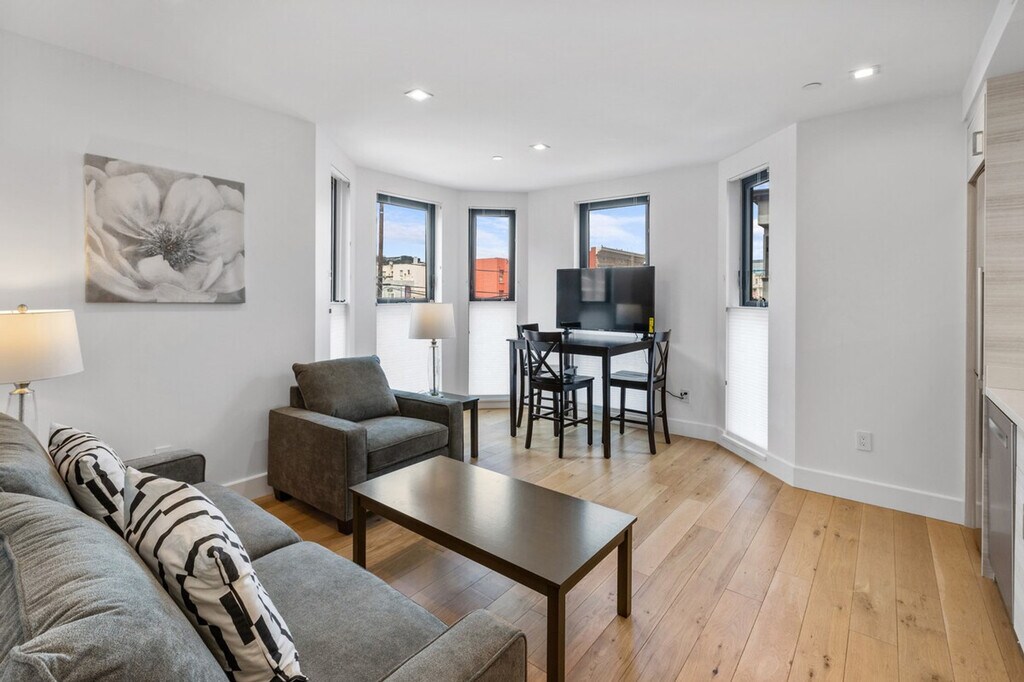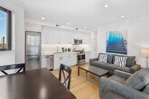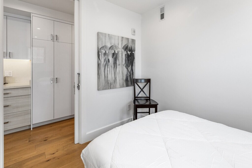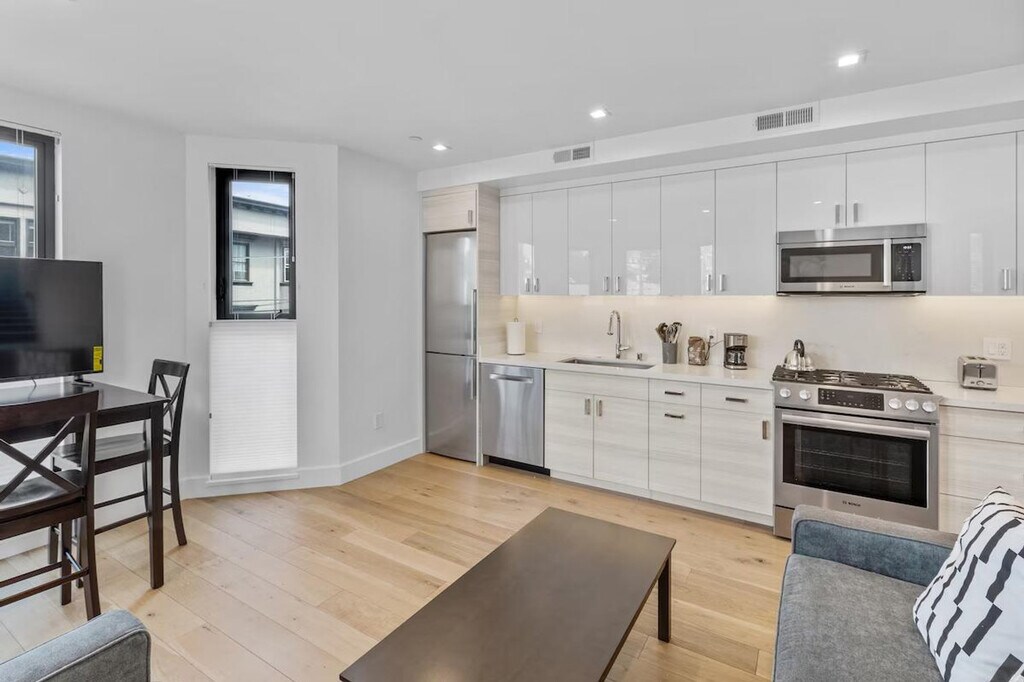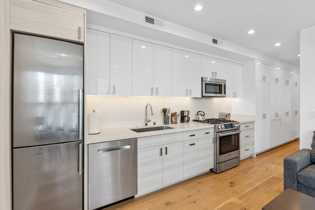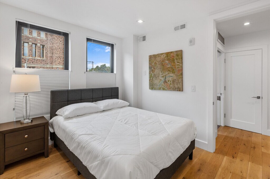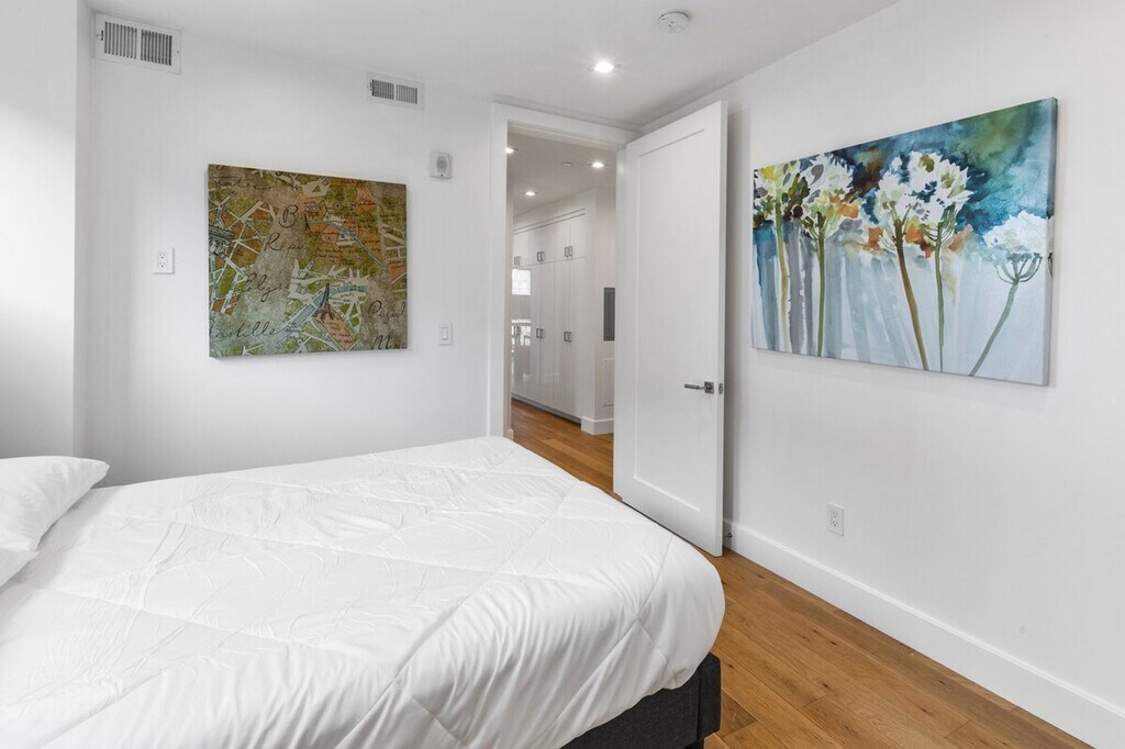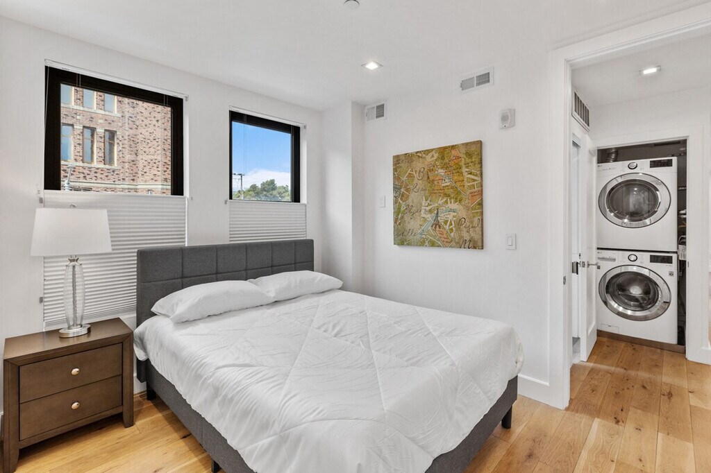 Feel at home in this unique two-bedroom condo at 1801 Mission Street, a brand new building offering high-tech and luxury living in the heart of the vibrant Mission District. Built in 2020, this condo features radiant floor heating, high-end appliances, and beautiful oak hardwood floors. Located on the corner of 14th and Mission, it is just two blocks from 14th and Valencia, with BART nearby, making it convenient for exploring San Francisco's vibrant culture. The condo boasts large bedrooms with blackout blinds, a kitchen equipped with a Bosch fridge with ice maker, Bosch dishwasher, and microwave, and a washer and dryer in the unit. Enjoy the comfort of air conditioning and the convenience of in-unit laundry. Parking is available for an additional $350 per month. Cats and dogs up to 45 lbs are allowed, with a non-refundable pet charge or increased deposit and a monthly charge required. The building features a bike room, rooftop deck, dog run, and package room. Situated in the Inner Mission neighborhood, this condo is surrounded by favorite restaurants, music venues, and cultural and arts events. Valencia Street, known for its destination eateries, funky independent shops, and eye-popping murals, is just steps away. Public transportation is easily accessible with BART only two blocks away. Pets must be approved, and certain breeds and pets over 50 lbs are restricted. A fine will be charged for not cleaning up after pets. Pets are not allowed in common areas except to enter or exit the building and must be on a leash when outside the unit. Check-in and check-out times are flexible within the lease term of 1-12 months. Please note that a refundable security deposit of $1,000 is required and must be paid directly to the partner after the booking is confirmed. [SI]
