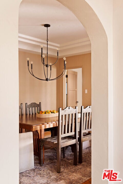 On an idyllic tree-lined street in the heart of Glendale, this beautifully-appointed 3 bed 2 bath Spanish offers light-filled living spaces with graceful archways, period details, and thoughtful updates throughout. Past a charming courtyard and through the entry, find a living room anchored by a brick fireplace and a dramatic vaulted wood ceiling. The dining room leads into a beautifully renovated kitchen with attached sitting and laundry rooms. From the central corridor, find 3 bright bedrooms and 2 newly renovated baths. Outside, the private backyard welcomes you with a perfectly shaded deck with lounge and dining areas, as well as a hot tub, fire pit, and abundant space to play throughout the generous lot. Offered fully furnished, this oasis offers a rare blend of style, comfort, and convenience in one of Glendale's most sought after neighborhoods. MLS# 26648467