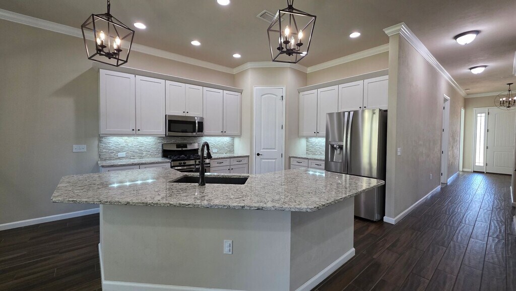 Welcome to Arbor Greens, a residential community. This beautiful 4 bedroom, 3 bathroom, crafted home by Robinshore, is available now and move-in day can be negotiable. The community is near Town of Tioga and Jokey Club, and with a short drive to I-75. This corner home was built in 2016 and it is in impeccable conditions. Low maintenance wood-look tile floors in common areas and Stainmaster textured Berber carpet in bedrooms. The open concept kitchen brings granite counter tops and stainless steel appliances, including a gas range and a built-in microwave. The laundry room features a Kenmore Elite washer and dryer stackable set and ample storage space. All bathrooms feature granite countertops, two of them with walk-in showers and the master shower with dual showerheads and river rock pebbles flooring. Privacy is plus in this home which is located next to 1.5 acre retention pond nicely maintained by the HOA, and a large mature tree buffer in the back. The community offers a pool, playground and clubhouse. Furniture is not included. Renter's insurance is required and pets are permitted on a case by case basis.