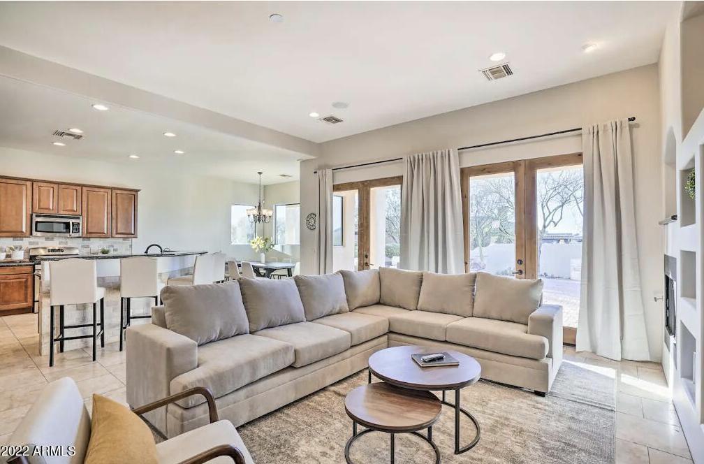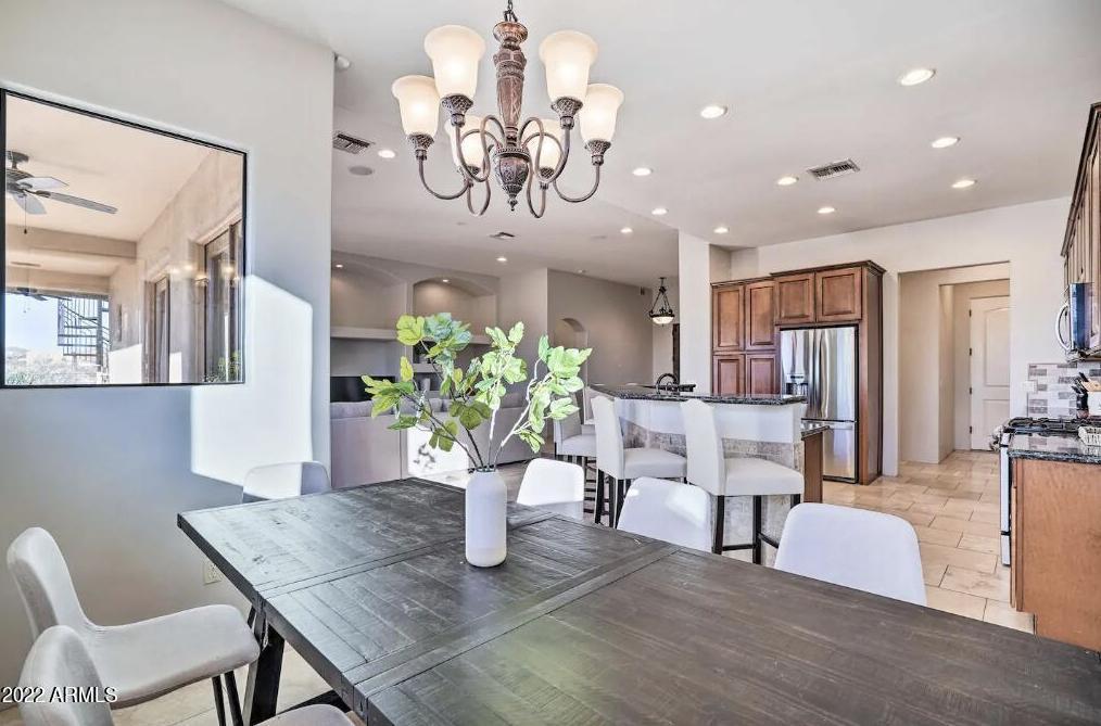 Spectacular mountain and sunset views define this outstanding No HOA horse property. Professionally furnished and truly suitcase ready,this home is an exceptional opportunity for those seeking a high-performing Arizona investment or a private vacation retreat. Designed for effortless indoor-outdoor living,the gorgeous low-maintenance backyard offers exceptional privacy and features an oversized paver patio,multiple fire features,putting green,rooftop view deck,and a professional-grade built-in BBQ. The flexible floor plan includes 4 bedrooms,4 bathrooms,a dedicated office that could easily serve as a 5th bedroom,plus an additional office or nursery space connected to the primary suite. With ideal north-south exposure and thoughtfully designed living spaces throughout,this property delivers comfort,style,and versatility in a rare desert setting. THE POOL/SPA IS DRAINED AND NOT FUNCTIONAL.