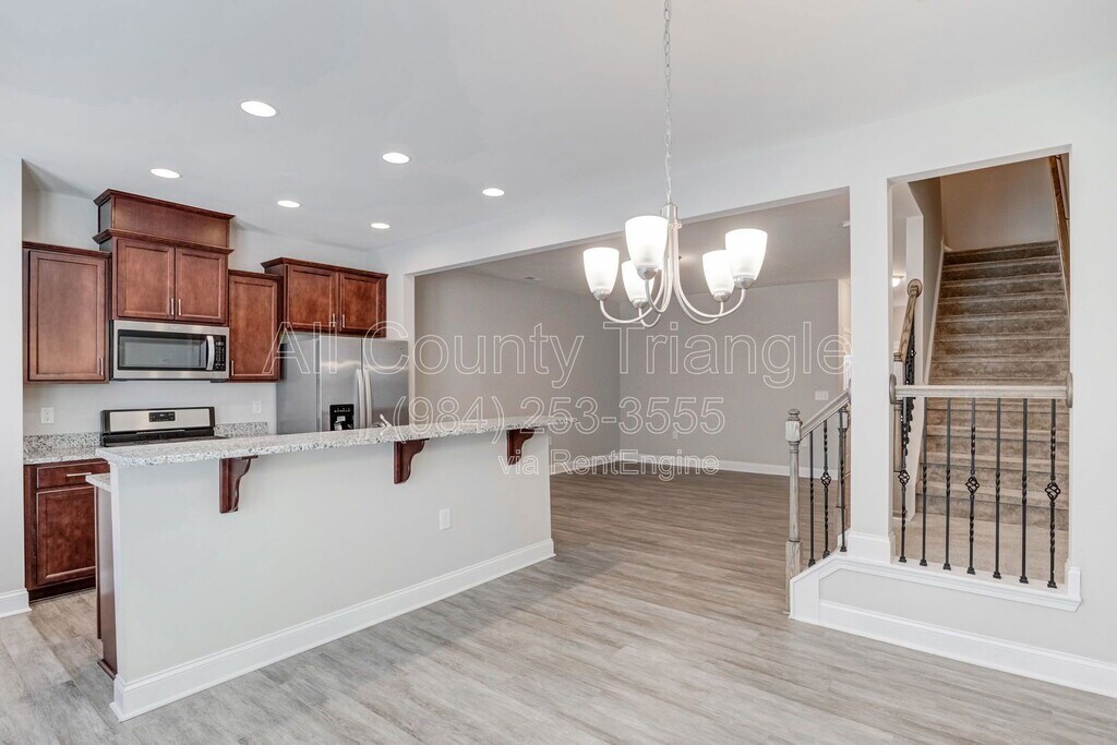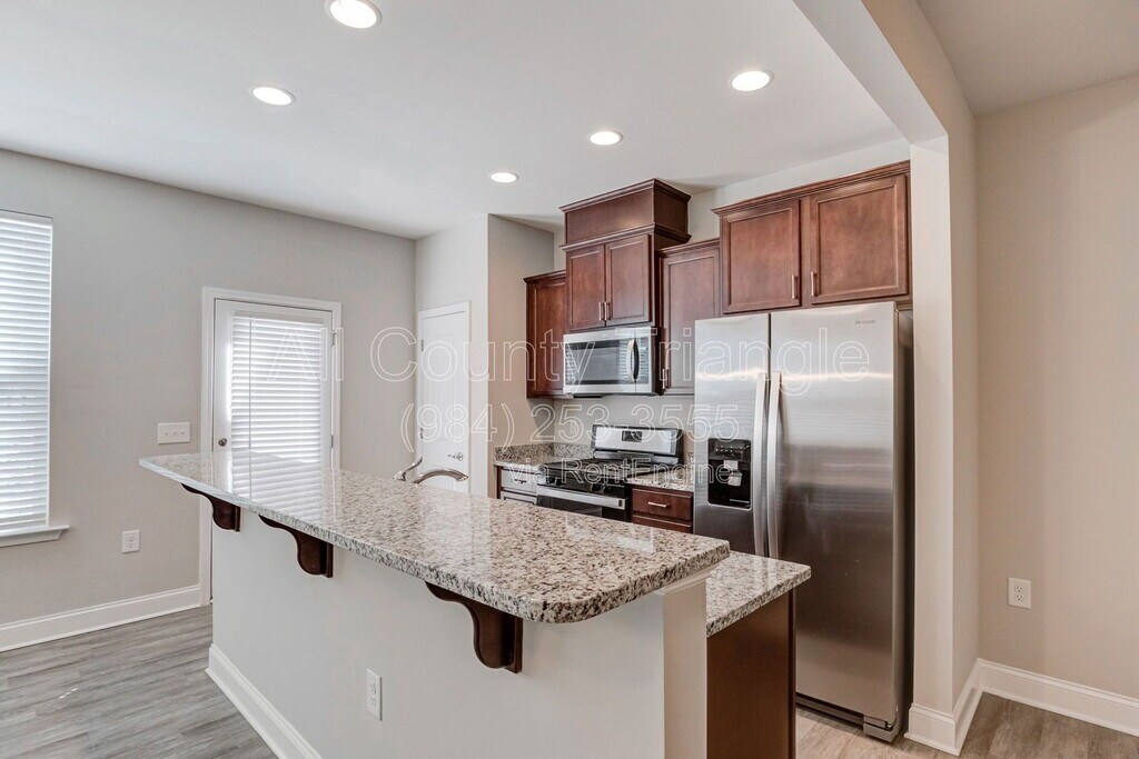 Step into this 2021-built townhome in the Shepard’s Square community. Offering a perfect blend of style and location, this home features an open-concept layout, high-end finishes, and unbeatable access to the best of the Triangle. Property Features - Modern Kitchen: Large island with granite countertops, dine-at bar, dishwasher, pantry, and stainless steel appliances including gas range - Spacious Living: Vinyl plank flooring throughout the main level, open living room with separate dining area. - Primary Suite: Bright and spacious featuring large walk-in closet, and an ensuite bath with a double vanity. - Convenience: Attached 1-car garage with additional driveway space. Second-floor laundry room (near bedrooms) with washer and dryer included. Lawn maintenance and landscaping included! - Outdoor Space: Private rear patio with a personal storage closet, perfect for morning coffee or grilling. Location & Connectivity: Private dog park & walking trails. 10 min to RTP, 15 min to RDU, 10 min to Downtown Durham (DPAC, Bulls Stadium), and 12 min to Brier Creek shopping & Restaurants. Pets allowed with screening, additional security deposit, and monthly pet rent. An application is required for all occupants age 18 and older with a $55 non-refundable fee required for each applicant. A credit, background, and eviction check as well as employment, income, and rental history verifications are completed on all applications. Security deposit required is determined based on the application screening results, not to exceed the amount allowed by NC law. In addition to the application fee, a $5 monthly credit reporting fee is required for reporting of rental payments to credit bureaus. By submitting your information on this page you consent to being contacted by the Property Manager and RentEngine via SMS, phone, or email.