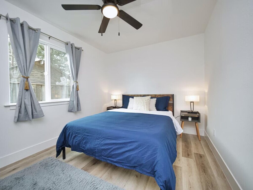 Feel at home in this brand-new 2-bedroom guesthouse in San Jose, thoughtfully designed for your ultimate comfort and convenience. This home offers complete privacy with a private entrance and spacious backyard. This home is equipped with a fully stocked kitchen featuring a 4-burner cooktop, oven, microwave, dishwasher, coffee machine, and toaster oven. For entertainment, there is a smart 55" TV with Roku and ultra-fast fiber broadband Wi-Fi. Enjoy the newly renovated shared backyard with stylish furniture, a BBQ grill, and ample lighting. A brand new mini-split heat/cool system ensures year-round comfort. Free on-site washer and dryer with laundry detergent are provided. Pets are welcome. Baby essentials are available on request, including a high chair, pack and play, and toys. One off-street parking spot is available on the driveway, plus plenty of curbside street parking. Centrally located, this home is just 2 minutes from Starbucks, McDonald’s, and other dining options, and 5 minutes from freeways 101 and 280. It's also conveniently located 5 minutes from Happy Hollow Zoo, Hellyer County Park, and Vietnamtown, 10 minutes from major grocery stores like Costco, Target, and Walmart, and 10 minutes from SAP Center, Santana Row, Downtown San Jose, and Japantown. San Jose International Airport is a 14-minute drive, and tech giants like Netflix, Apple, and NVIDIA are 15–20 minutes away. This is one unit in a multi-family property. The typical sounds of children playing, dogs barking, and cars coming and going from the neighbors might be heard outside of the property. No parties or smoking inside the house are allowed, and any violation of house rules will incur a $500 fee. Includes a home office set-up with a 24-inch monitor available upon request. [SI]