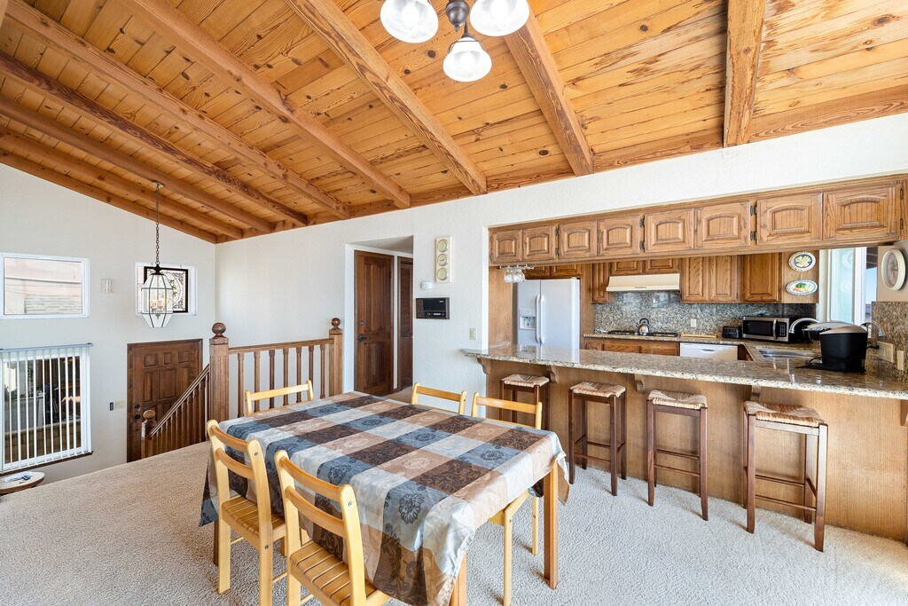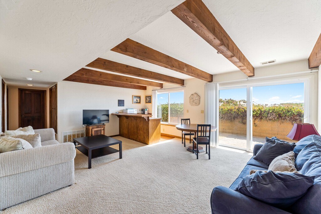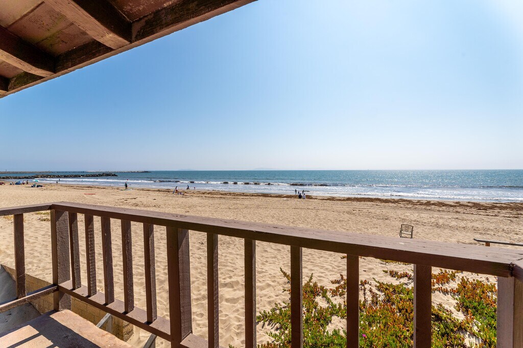 ***Fully furnished 30-day rental with all utilities included. Please inquire for current pricing and availability.*** We’re thrilled to welcome you to this stunning oceanfront home in Ventura’s Pierpont Beach community! Situated on a prime corner lot, this 4-bedroom, 4-bath coastal bungalow showcases unobstructed ocean views from nearly every room, along with two spacious balconies and a private patio. With 2,863 sq. ft. of comfortable living space, it sleeps up to 10 guests—perfect for families, friends, and anyone looking to unwind and enjoy the fresh ocean breeze. The main living area flows seamlessly into the kitchen, creating an open, welcoming space for gathering. Three oversized sofas, a Smart TV, a dining table for six, and sweeping sunset views make this the heart of the home. The fully equipped kitchen features barstool seating, double ovens, a large refrigerator, gas range, microwave, Keurig coffee maker, and all the cookware, utensils, and tableware needed for a relaxing, carefree stay. Downstairs, a second living area offers an additional retreat complete with a large Smart TV, plush seating, and a wet bar—perfect for mixing a cocktail before stepping out onto the private patio. Through the sliding glass doors, you’ll find a charcoal BBQ, extra seating, and direct access to the sand. The expansive master suite boasts breathtaking ocean views and an en-suite bathroom with dual sinks and a luxurious soaking tub. The second bedroom includes a queen bed and TV, the third offers two twin beds, and the fourth features a king bed. With living spaces on two levels, this home provides excellent privacy and comfort for groups and families alike. This oceanfront bungalow radiates classic coastal charm, with vaulted wood-beamed ceilings, a grand stone fireplace, oak cabinetry, and warm, neutral décor. Meticulously maintained, it blends comfort, character, and effortless California beachside living. Location & Activities Ventura’s ideal climate is just the beginning. Enjoy a vibrant mix of local art galleries, museums, shopping, the Saturday Farmers Market, coastal bike paths, surfing, live music, and an incredible dining scene. The downtown trolley provides an easy way to explore the city, including the bustling harbor—home to whale-watching tours and excursions to the Channel Islands. Here, the beach is your backyard. Take a scenic five-mile stroll or bike ride along the Ventura Promenade from San Buenaventura State Beach to the Ventura Pier and Surfers’ Point Park. Head the other direction to Marina Park, a family-friendly spot with a playground and sailing-ship replica for kids, or simply relax and watch the boats drift in and out of Ventura Harbor. Golf lovers will appreciate three excellent courses nearby: Olivas Links, River Ridge, and Buenaventura. While you may never want to leave Ventura, you’re conveniently located within easy reach of Southern California’s top destinations—45 minutes to Santa Barbara, 25 minutes to Ojai, 45 minutes to Malibu, and roughly 90 minutes to Los Angeles International Airport (LAX). If you're searching for the perfect coastal getaway, you’ve found it. This charming seaside town offers the ideal setting for your next unforgettable stay. Let your Ventura adventure begin—inquire or book today!