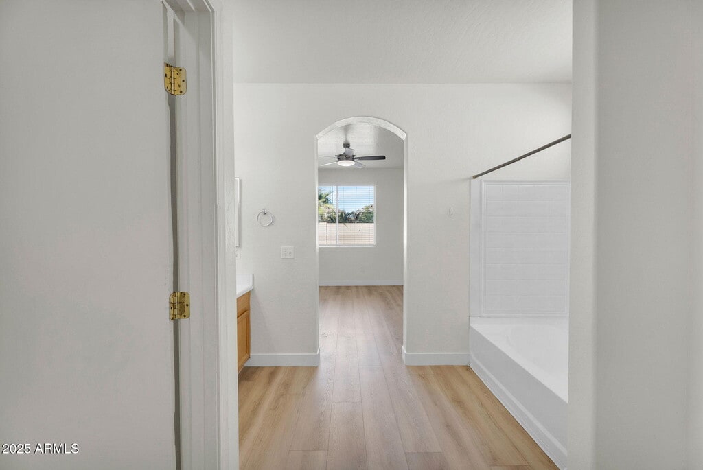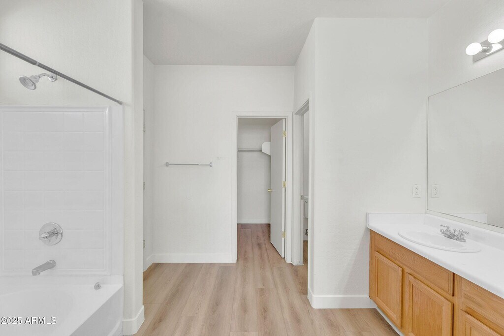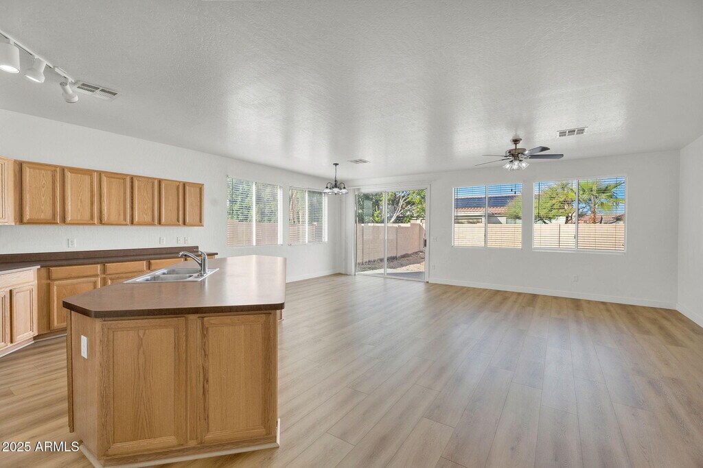 NEW Wood looking laminate flooring throughout the home! Beautiful 4-Bedroom + Den Home with All the Features You've Been Searching For! Step inside to a grand entrance with long,inviting hallways leading you to the heart of the home. The spacious kitchen boasts a massive island,abundant cabinet storage,and generous counter spaceall overlooking the open great room filled with natural light. The primary suite offers dual sinks and a large garden tub/shower combo for relaxing evenings. Outside,enjoy a sizable backyard with lush green grassperfect for entertaining or play!