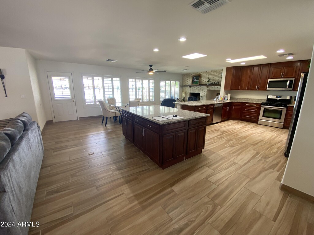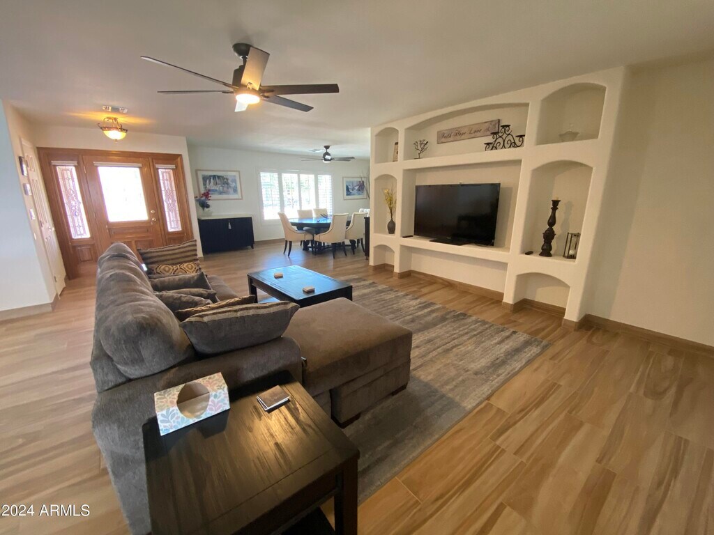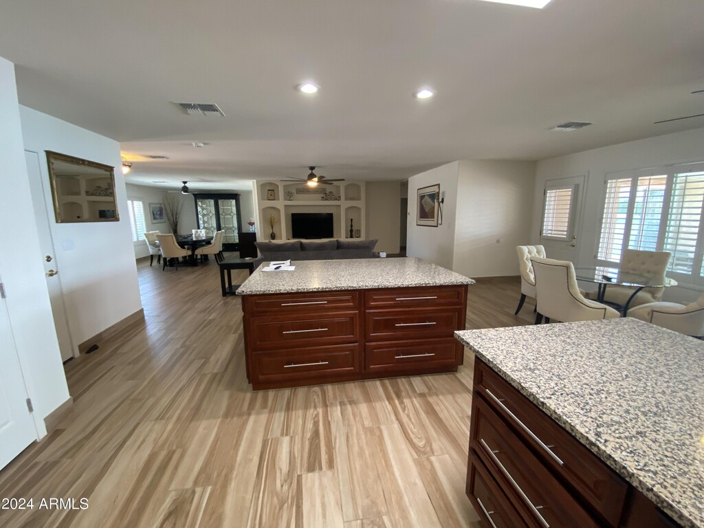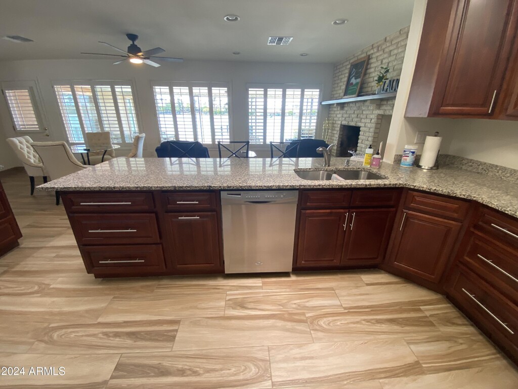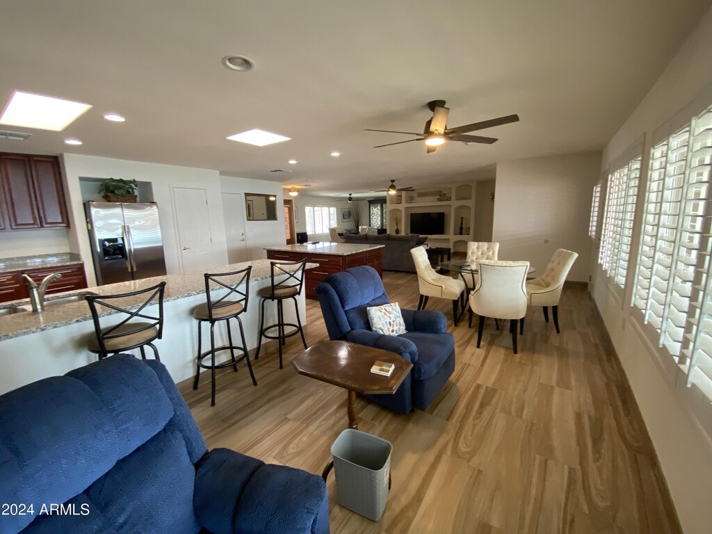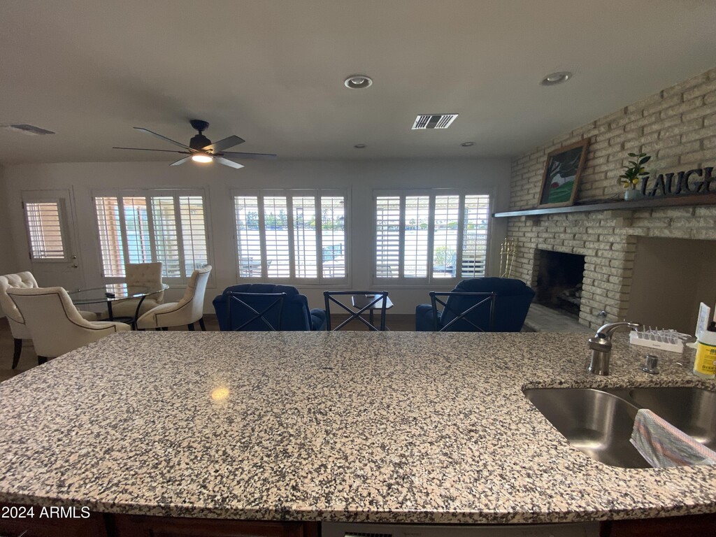 Unique and fully furnished rental home located on Viewpoint Lake in Sun City. This spacious 3-bedroom,2-bathroom home features a brand-new kitchen,new flooring,fresh paint,and granite countertops. Enjoy plantation shutters throughout the home. The primary bedroom boasts a king bed,while the second bedroom offers a queen bed and the third bedroom a twin bed. At least one tenant must be 55 years or older. Don't miss out on this fantastic opportunity!