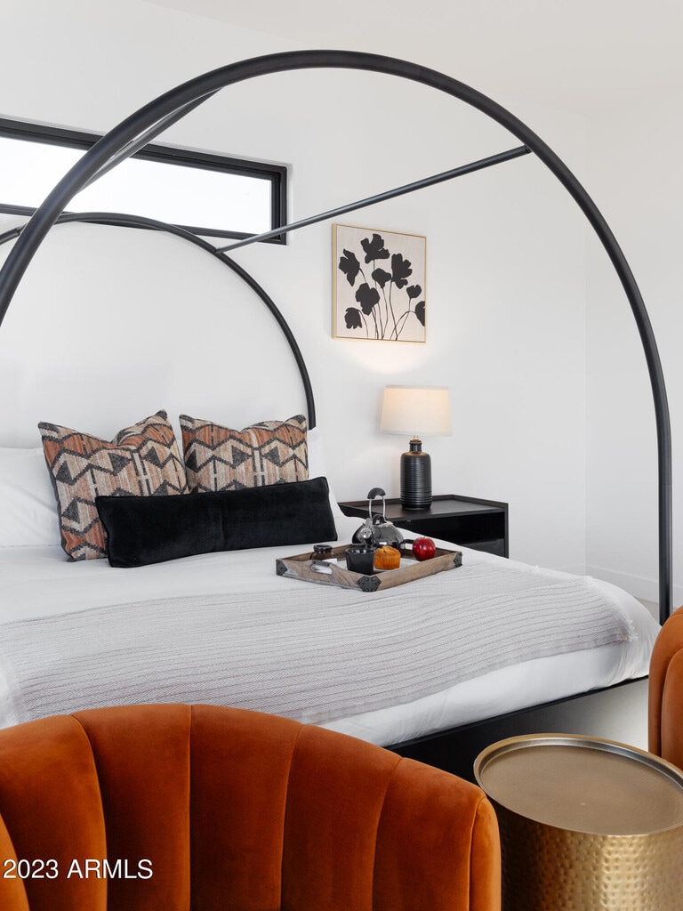 This brand-new,designer-furnished residence offers five bedrooms,four and a half bathrooms,and a thoughtful layout ideal for both family living and entertaining. Located in the heart of Central Scottsdale,the home combines modern elegance with a warm,family-friendly atmosphere,providing an exceptional long-term lease opportunity. The main living spaces are defined by soaring ceilings and expansive windows that flood the home with natural light. The open-concept design connects the living room,kitchen,and formal dining area seamlessly. The living room features a sleek electric fireplace,large Smart TV,and modern finishes,creating a sophisticated yet comfortable environment for everyday living. The chef's kitchen is equipped with high-end appliances,amazing home! This brand-new,designer-furnished residence offers five bedrooms,four and a half bathrooms,and a thoughtful layout ideal for both family living and entertaining. Located in the heart of Central Scottsdale,the home combines modern elegance with a warm,family-friendly atmosphere,providing an exceptional long-term lease opportunity. The main living spaces are defined by soaring ceilings and expansive windows that flood the home with natural light. The open-concept design connects the living room,kitchen,and formal dining area seamlessly. The living room features a sleek electric fireplace,large Smart TV,and modern finishes,creating a sophisticated yet comfortable environment for everyday living. The chef's kitchen is equipped with high-end appliances,a spacious island,and ample cabinetry. Adjacent,the dining area offers room for gatherings,complemented by designer décor that balances elegance with modern artistic touches. The five bedrooms are designed to provide privacy and comfort. The primary suite offers a retreat-like experience with a spa-inspired bathroom including dual vanities,a soaking tub,and a walk-in shower. Additional bedrooms include a mix of ensuite and shared bathroom access,accommodating both family members and guests with ease. Outdoor living is enhanced by a covered patio,landscaped yard,and room for dining and lounging under the Arizona sun. The property also includes a dedicated laundry room,three-car garage,and additional driveway parking. With its new construction,designer furnishings,and prime Central Scottsdale location near top schools,dining,and recreation,this home presents a rare opportunity for long-term leasing in one of the Valley's most desirable neighborhoods.