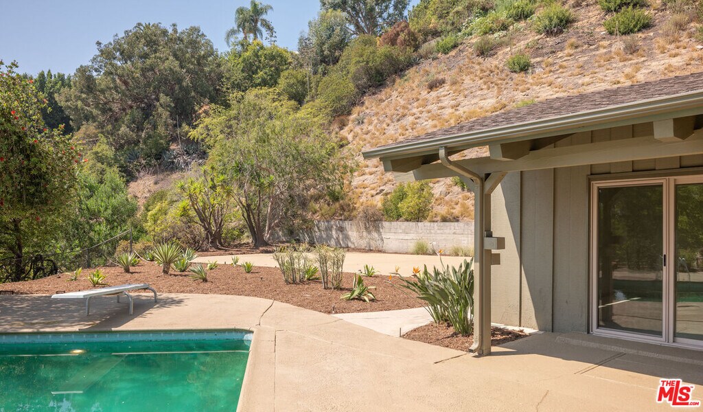 Built the year Elvis Presley bought Graceland this could be your private haven with lots of space, a view over the City of Angels and style all wrapped into one. On the biggest lot at the end of one of the prime streets in the hills while only two minutes from Sunset, the property is private but with a head on view, an extra-large pool, a pickle ball court, mature trees and parking for many. The house opens to a great room open to two stories with a library above, connecting to a kitchen with breakfast area, two bedrooms and bath upstairs and a bar with game room below. Primary Suite with pool access, dressing room and bath, as well as two additional bedrooms complete this jewel. It brims with architectural details like rock walls, built ins, wood floors and more. MLS# 25594117